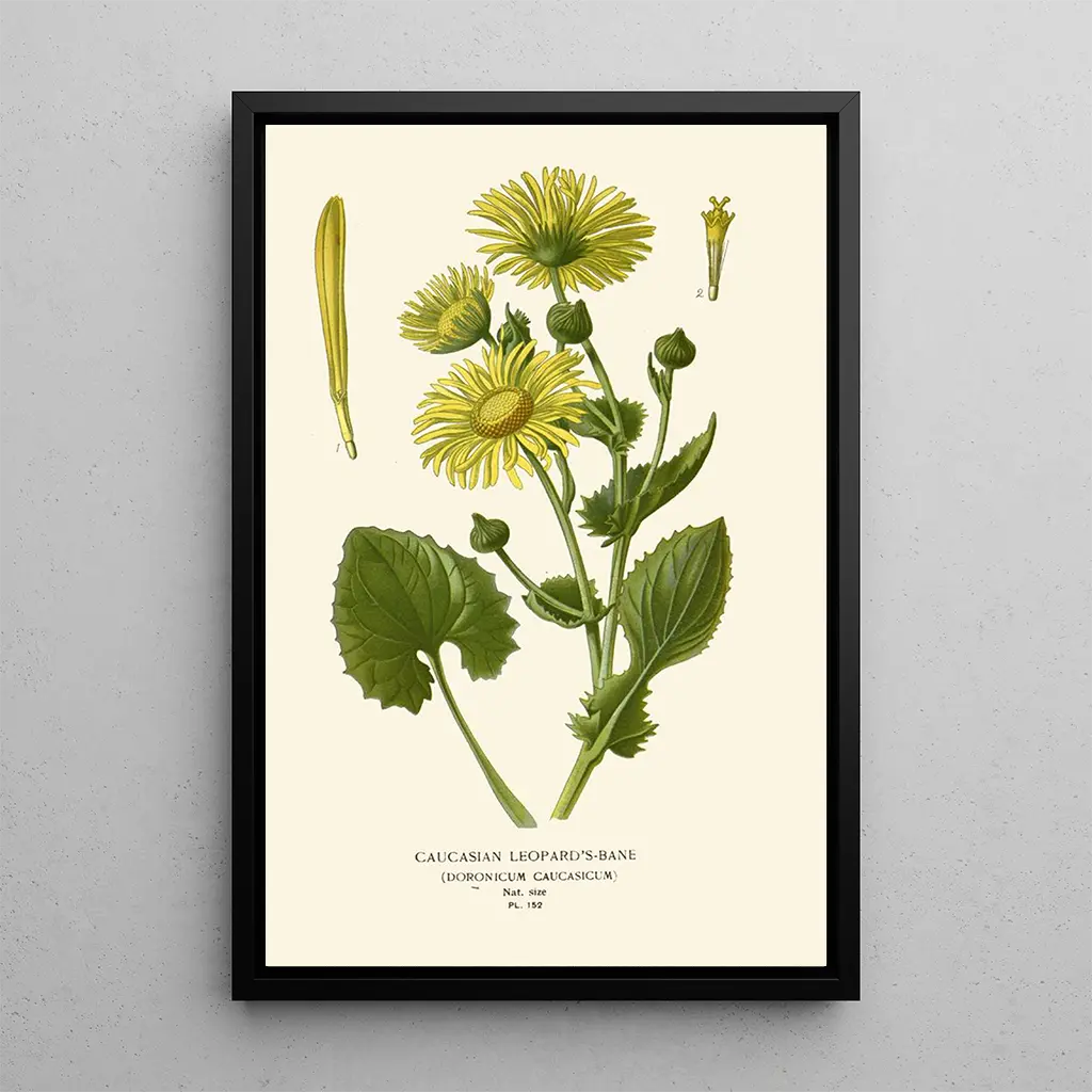 "The Doronic of the Caucasus" is an art print that celebrates the beauty of wildflowers, capturing the very essence of nature in all its splendor. Edward Step offers us a composition rich in colors, where shades of yellow and green intertwine to create a joyful and lively atmosphere. Step's technique, characterized by striking realism, allows you to feel the delicacy of the petals and the freshness of the leaves. Every detail is carefully rendered, inviting the viewer to immerse themselves in this lush garden. This art print of "Doronic of the Caucasus" evokes a sense of peace and connection with the natural world.