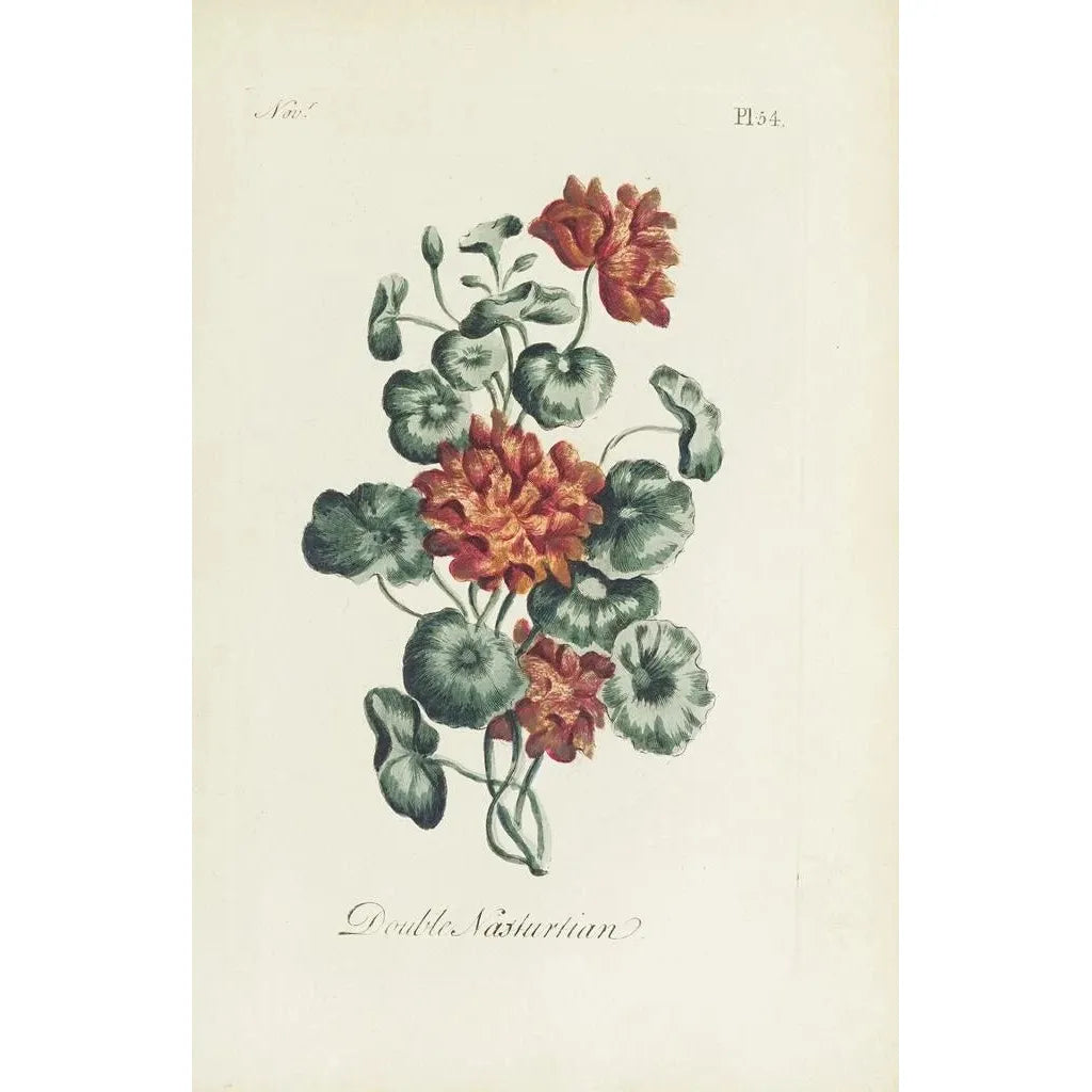 The art print of the Double Nasturtium immerses us in a vibrant universe where warm, dazzling hues intertwine. The petals, in a fiery orange, seem to dance under the light, while the green leaves add a touch of freshness to this floral composition. The engraving technique used by Carington Bowles allows for each detail to be rendered with remarkable precision, thus offering an atmosphere that is both joyful and soothing. This artwork invites contemplation, evoking the ephemeral beauty of flowers and their ability to brighten our living spaces.