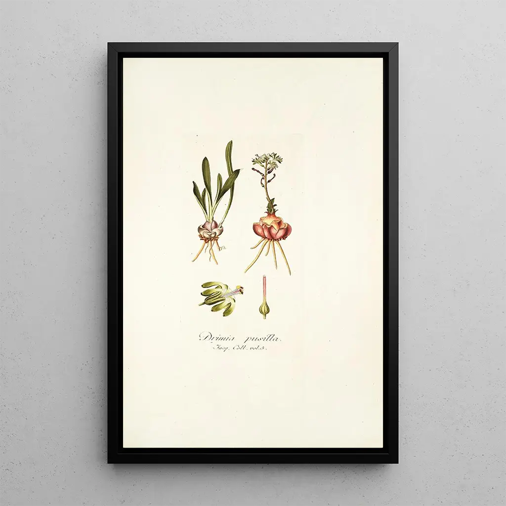 Drimia pusilla : a floral delicacy to admire The art print of Drimia pusilla transports us into a world of finesse and natural beauty. This painting, signed by Nikolaus Joseph Freiherr von Jacquin, highlights a small plant with meticulous details, revealing the richness of flora. The soft hues and delicate shapes of this work evoke a sense of calm and serenity. The watercolor technique, skillfully used by Jacquin, captures the light and transparency of the petals, creating a poetic atmosphere. Each element of this composition invites contemplation and wonder. Nikolaus Joseph Freiherr von Jacquin : an artist at the crossroads of art and science Nikolaus Joseph Freiherr von Jacquin, botanist and illustrator of the 18th century, marked his era with his contributions to science and art. Raised in an educated environment, he studied in Vienna before traveling to the colonies, where he collected botanical specimens. His works, including Drimia pusilla, reflect his attention to detail and his passion for nature. As an influential member of the Academy of Sciences, Jacquin was able to combine scientific rigor with artistic sensitivity, making him an emblematic figure in botany. A decorative acquisition with multiple assets The art print of Drimia pusilla is a perfect decorative choice to enhance your interior, whether in a living room, office, or bedroom. Its print quality and fidelity to the original works make it a valuable addition to any collection. This painting brings a touch of lightness and freshness to your space, while inspiring admiration from your guests. By choosing this canvas, you select a piece that combines beauty and culture, enriching your decoration with a natural and artistic breath.