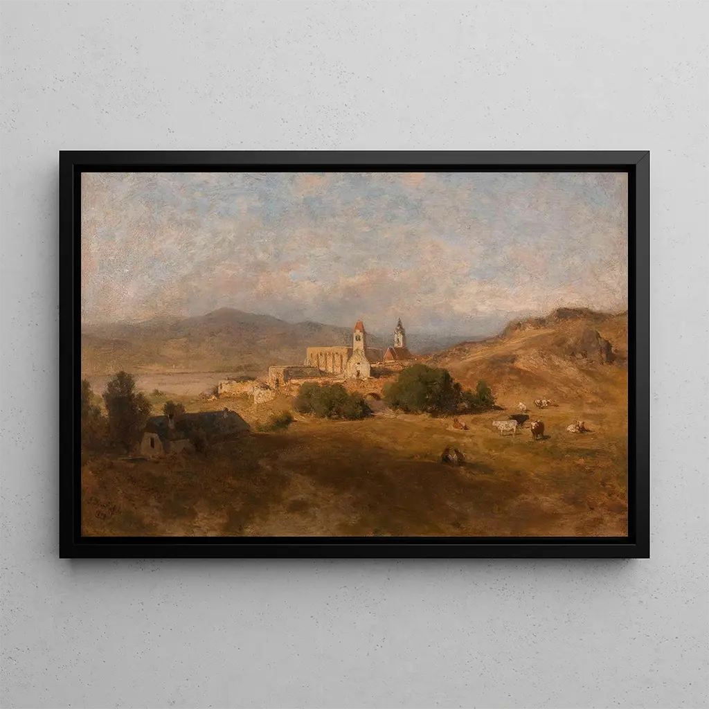 Eduard Peithner von Lichtenfels was an Austrian painter of the 19th century, known for his romantic landscapes that capture the natural beauty of Austria. Influenced by the Romantic movement, he was able to create works that evoke deep emotions and a spiritual connection with nature. His career spanned several decades, during which he explored various themes, always with particular attention to detail and light. Dürnstein, one of his emblematic works, perfectly illustrates his style and his commitment to faithful landscape representation.