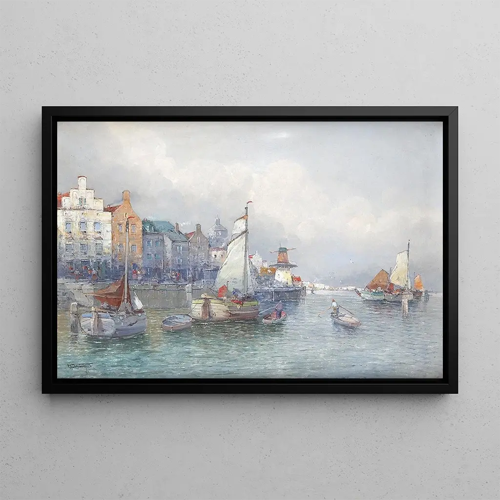 Scene of a Dutch port: a dance of light and life The art print of the Scene of a Dutch port immerses us in a vibrant painting, where shades of blue and green blend harmoniously. The white sails of the boats stand out against the shimmering water, while the characters, dressed in period costumes, bustle on the quay. Georg Fischhof's technique, which employs delicate brushstrokes, creates a lively and dynamic atmosphere, almost tangible. This art print evokes not only a frozen moment in time but also the bustling activity of a port in full operation, inviting the viewer to imagine the stories behind each face. Georg Fischhof: a master of maritime realism Georg Fischhof, a 19th-century Austrian painter, is renowned for his maritime works that capture the essence of port life. Influenced by the realist movement, he skillfully transcribed the details of everyday life with precision, while adding a poetic dimension to his compositions. Fischhof often explored themes of the sea and ports, reflecting the importance of these places in commerce and culture of his era. His style, characterized by meticulous attention to detail and a rich palette, makes him an essential artist for those interested in maritime art. A decorative acquisition with multiple advantages Choosing the art print of the Scene of a Dutch port means selecting a canvas that will add a touch of elegance to your interior. Whether in a living room, office, or bedroom, this piece will captivate attention and spark conversations. Its printing quality guarantees fidelity to the colors and details of the original, while offering undeniable aesthetic appeal. By incorporating this art print into your decor, you add not only a piece of art but also a window into a maritime world rich in history and life.