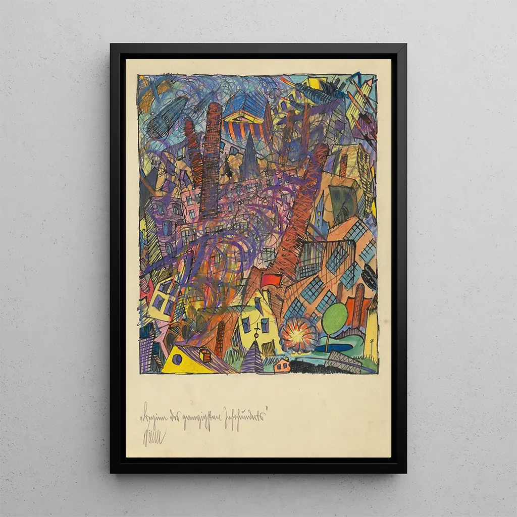 The art print Beginning of the Twentieth Century by Karl Wiener captures the essence of a pivotal era, where aesthetic standards were undergoing profound transformation. The vivid colors and bold shapes testify to a desire to break established conventions. This canvas, through its dynamism and modernity, reflects the social and cultural changes shaking the world at that time. The composition, rich in detail, invites a visual exploration that transcends mere decoration, engaging the viewer in a reflection on the evolution of art.