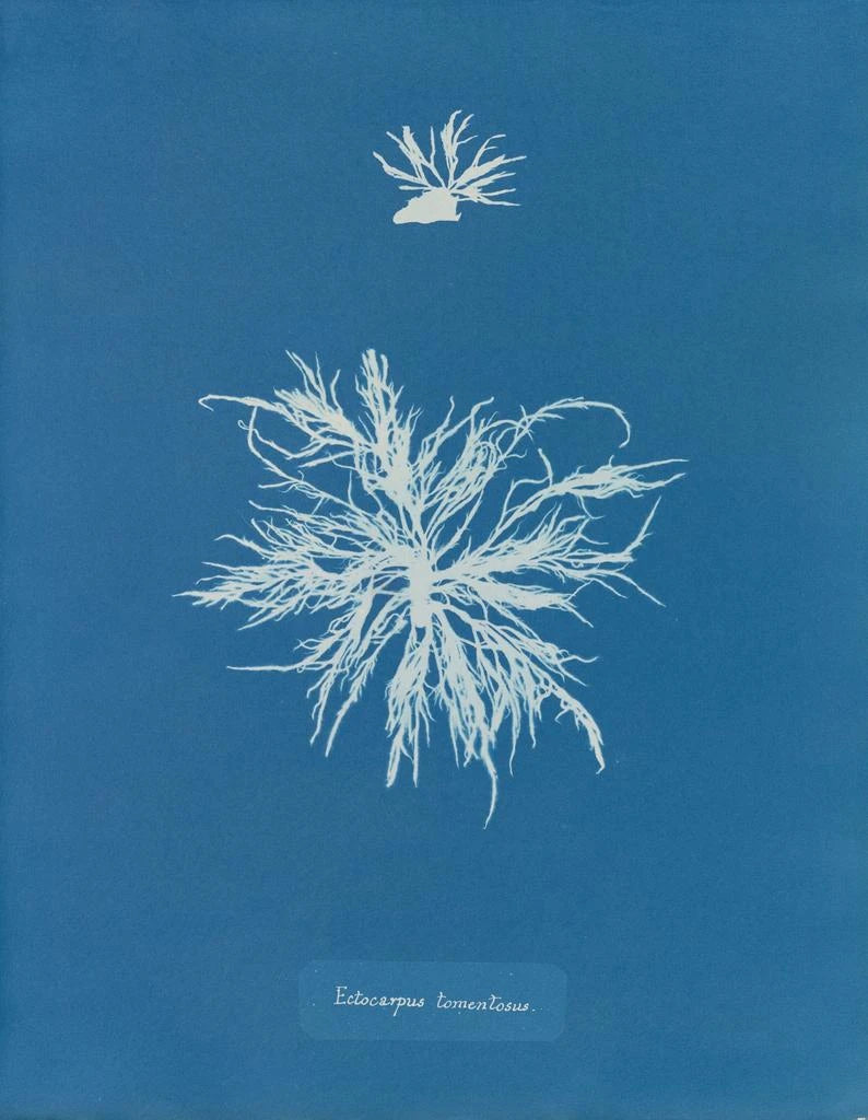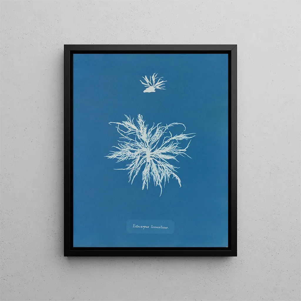 In the fascinating world of botanical art, the art print "Ectocarpus tomentosus" by Anna Atkins stands out for its delicacy and innovation. This iconic piece, created in the 19th century, is not only a visual representation of a marine algae but also a testament to the intersection between science and art. Anna Atkins, a pioneer of botanical photography, captured the ephemeral beauty of nature through avant-garde techniques for her time. By exploring this art print, one discovers a universe where every detail, every nuance, tells a story, making this art print a true masterpiece to contemplate. Style and uniqueness of the work The originality of "Ectocarpus tomentosus" lies in its unique approach to botanical representation. Using cyanotype technique, Anna Atkins transformed natural specimens into striking images, where light and shadow play a crucial role. The deep blue hue resulting from this evokes both the sea and the sky, creating an atmosphere of serenity and contemplation. Each algae is reproduced with meticulous precision, inviting the viewer to observe delicate textures and organic shapes. This choice of medium, both scientific and artistic, perfectly illustrates Atkins's vision, which sought to immortalize the beauty of nature while contributing to botanical knowledge. Contemplating this work, one feels a deep connection with the natural world, as if each element were an invitation to explore the mysteries of marine life. The artist and her influence Anna Atkins, often considered one of the first female photographers, marked her era with her boldness and creativity. Born in 1799, she lived at a time when women were rarely recognized in scientific and artistic fields. Her work on "Ectocarpus tomentosus" and other similar pieces not only paved the way for botanical art but also laid the foundations for scientific photography. By combining her love for botany with an artistic approach, Atkins successfully evolved the perception of photography, considering it as a full-fledged means of expression. Her