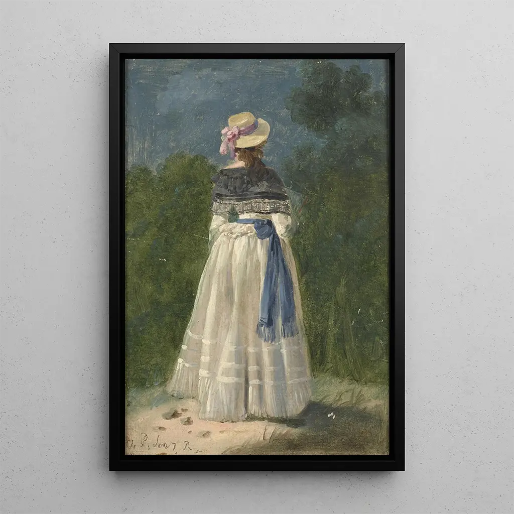 A graceful lady viewed from behind: a mysterious silhouette in elegance This captivating art print, "A graceful lady viewed from behind," immerses us in a world of refinement and mystery. The composition highlights a woman dressed in a sumptuous gown, with delicate details accentuated by rich colors and subtle shadows. Jean Pillement's technique, skillfully blending oil painting and pastel, creates an atmosphere that is both intimate and contemplative. The viewer's gaze is drawn to the graceful posture of the lady, who seems to move away while exuding an aura of sophistication and charm. Jean Pillement: a master of the 18th century blending elegance and nature Jean Pillement, an 18th-century painter, is renowned for his works that combine the beauty of human forms with lush landscapes. Influenced by rococo, his style is characterized by delicate compositions and pastel colors that evoke lightness and grace. Pillement captured the spirit of his era, where art reflected the morals and aspirations of a society in full transformation. His work, often associated with the depiction of aristocratic life, demonstrates a particular sensitivity to details and visual harmony, making him an essential artist of French artistic heritage. A decorative art print with many assets The reproduction of "A graceful lady viewed from behind" is an ideal decorative piece to enrich your interior, whether in a living room, office, or bedroom. Its printing quality guarantees remarkable fidelity to the nuances and textures of the original artwork, allowing you to fully enjoy its aesthetic appeal. This painting, with its elegant silhouette, will add a touch of sophistication and charm to your decor, while inspiring admiration from your guests. Choosing this art print means integrating a timeless work of art that evokes the beauty and elegance of the 18th century.