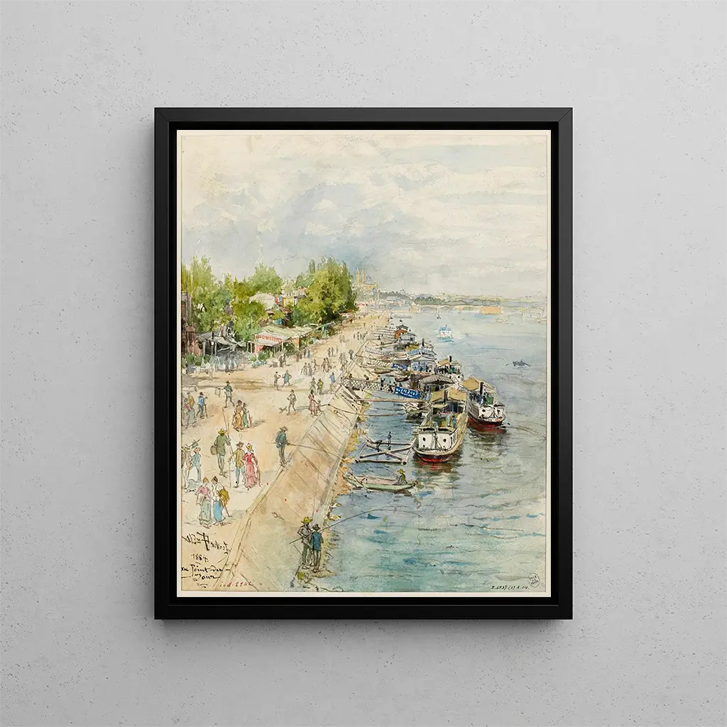 Embarkation at Point du Jour - Alexandre Prévost – Captivating Introduction Through the prism of art, "Embarkation at Point du Jour - Alexandre Prévost" transports us into a universe where light and water intertwine with striking delicacy. This artwork, emblematic of French maritime landscapes, evokes the magic of emerging dawns reflected on the waves. Gazing at this scene, the viewer is invited to feel the gentle morning, when nature awakens and the first light of day caresses the shoreline. Prévost's poetic vision immerses us in a serene atmosphere, where every detail seems to whisper forgotten stories, unfinished dreams, and promises of new beginnings. Style and uniqueness of the work Alexandre Prévost's style is distinguished by his ability to capture the fleeting nature of a moment. In "Embarkation at Point du Jour," the chiaroscuro technique is highlighted, creating a striking contrast between deep shadows and bursts of light. Shades of blue and pink blend harmoniously, evoking the awakening of a new day. The fluid shapes of the boats, almost ethereal, merge into the landscape, while the water's surface reflects the sky, creating a perfect symbiosis between natural element and human creation. Prévost manages to infuse an almost spiritual dimension into this scene, where time seems suspended, allowing the viewer to escape into a moment of introspection and contemplation. The artist and his influence Alexandre Prévost, a prominent figure of the French painting school, established himself through his unique approach to landscape. Influenced by the great masters of the 17th century, he reinterpreted the codes of classical painting while adding his personal touch. His work is characterized by meticulous attention to detail and sensitivity to light, elements that make him a pioneer in landscape art. Prévost also played a role in the transition towards Impressionism, emphasizing immediacy and subjective perception. His influence endures across generations, inspiring