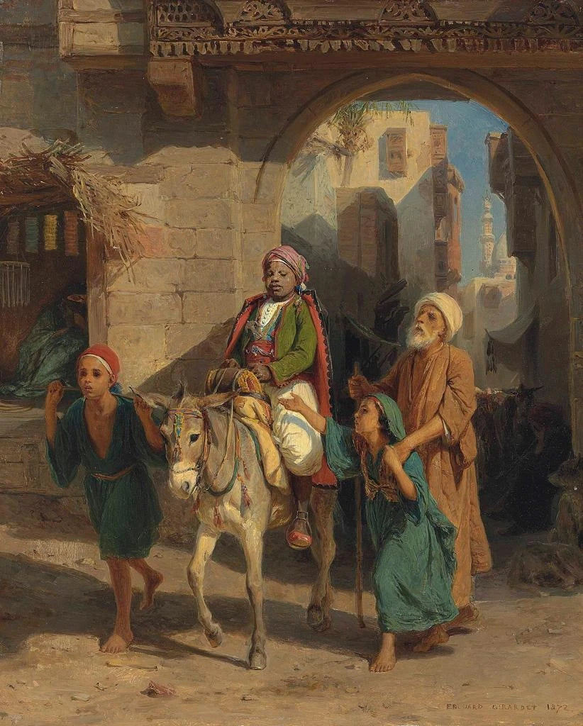 In the fascinating world of art, some artworks manage to capture the essence of an era while evoking universal emotions. "Entering the city - Édouard Girardet" is one of those creations that, through its striking realism and harmonious composition, transports the viewer to the heart of a vibrant scene. This piece, rich in detail and color, invites us to explore not only the architecture of the city but also the soul of its inhabitants. Immersing ourselves in this canvas, we feel the buzz of a city in motion, a place where every street corner tells a story.