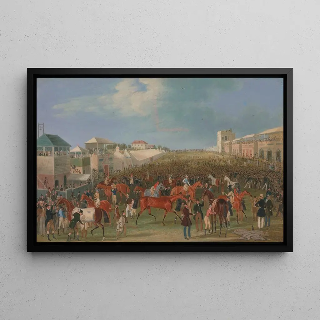 James Pollard, a British painter of the 19th century, is renowned for his works celebrating the equestrian culture of his time. Influenced by Romanticism and Realism, he captured the essence of horse racing, a sport favored by Victorian aristocracy. His paintings, often lively and dynamic, testify to his skill in representing the movements and emotions of horses and jockeys. "Epsom Races The finished race" is emblematic of his style, immortalizing moments of triumph and passion while offering a glimpse into the society of his era.