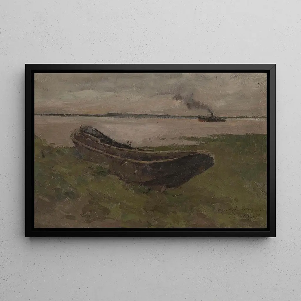 In this art print of Doel's Scheldt, Albert Baertsoen offers us a peaceful view of a river landscape. The soft hues and reflections on the water create an atmosphere of tranquility and contemplation. The composition, balanced between the sky, water, and natural elements, invites a visual stroll along the banks. The shades of blue and green blend harmoniously, while the clouds add a poetic dimension to this bucolic scene. Every brushstroke seems to breathe serenity, transporting the viewer into a moment frozen in time.