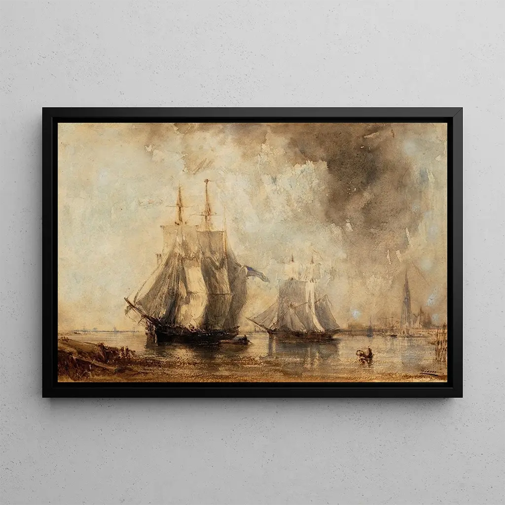 Antwerp Scheldt: a symphony of light and movement The artwork "Antwerp Scheldt" by Félix Ziem transports us to the heart of a vibrant maritime landscape. The shades of blue and green blend harmoniously, while the reflections of the sky in the water create an almost dreamlike atmosphere. Ziem's technique, characterized by fluid brushstrokes and dazzling light, brings this port scene to life. The majestic sailing ships seem to dance on the waves, while the buildings of Antwerp stand elegantly in the background. This art print invites contemplation, capturing the very essence of maritime life in the 19th century. Félix Ziem: a master of romantic landscape painting Félix Ziem, born in 1821, was a French painter renowned for his marine and urban landscapes. Influenced by the Romantic movement, he captured the beauty of the places he visited, notably Venice and the French coasts. His style is distinguished by a bold use of color and light, characteristic of the emerging Impressionism. Ziem was also a pioneer in exploring atmospheric effects, which helped him establish a reputation in the art world. "Antwerp Scheldt" is a perfect example of his talent, illustrating his attachment to nature and urban life. A decorative acquisition with multiple assets The art print of "Antwerp Scheldt" is an ideal choice to enhance your interior, whether in a living room, office, or bedroom. Its print quality and fidelity to the original work make it a captivating piece that draws the eye. The soothing tones and dynamic scene bring a touch of serenity to your space. By choosing this canvas, you add not only a piece of art but also an invitation to dreaming and escapism, transforming your decor into a true visual journey.