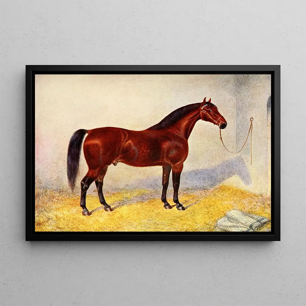 Stallion Cleveland Bay Sultan: an equestrian majesty in the spotlight The artwork "Stallion Cleveland Bay Sultan" by Frank Babbage depicts an equestrian scene imbued with nobility. The canvas, rich in detail, highlights the power and grace of this horse, whose shiny coat captures the light brilliantly. The warm, earthy colors evoke a pastoral landscape, while Babbage's technique, blending realism and romanticism, gives the animal an almost lifelike atmosphere. The background, subtly blurred, focuses attention on the main subject, creating an invitation to admire the natural beauty of this stallion. Frank Babbage: a master of animal realism Frank Babbage, active in the early 20th century, is renowned for his faithful representations of animals, particularly horses. Influenced by British artistic traditions, he was able to capture the very essence of his subjects with remarkable precision. His career, marked by a passion for riding and nature, allowed him to establish a reputation in the art world. At a time when realism was dominant, Babbage distinguished himself by his ability to combine technique and emotion, making him an important figure in the world of animal art. A decorative piece with multiple assets The art print of "Stallion Cleveland Bay Sultan" is a decorative piece that will enhance any space, whether a living room, office, or bedroom. Its printing quality guarantees fidelity to the colors and details of the original artwork, offering undeniable aesthetic appeal. By integrating this piece into your interior, you bring a touch of sophistication and nature, while celebrating Frank Babbage's art. This canvas thus becomes a focal point, inspiring admiration and contemplation from your guests.