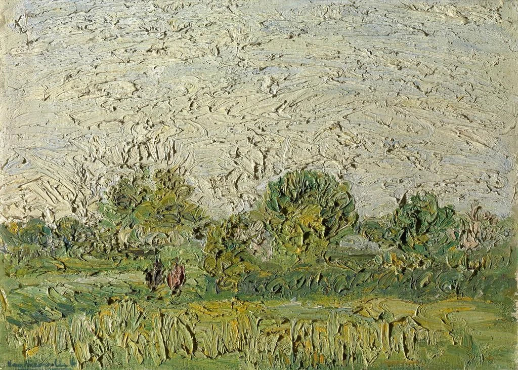 The artwork "Summer" evokes the softness and warmth of sunny days, where light dances on lush landscapes. The vibrant colors, ranging from bright yellows to deep greens, create a joyful and welcoming atmosphere. The technique used, likely oil painting, captures the brightness and texture of natural elements. Each brushstroke seems to imbue the air with a sense of lightness, inviting the viewer to immerse themselves in this idyllic scene. "Summer" is more than a simple representation; it is an invitation to savor the simple pleasures of the season.