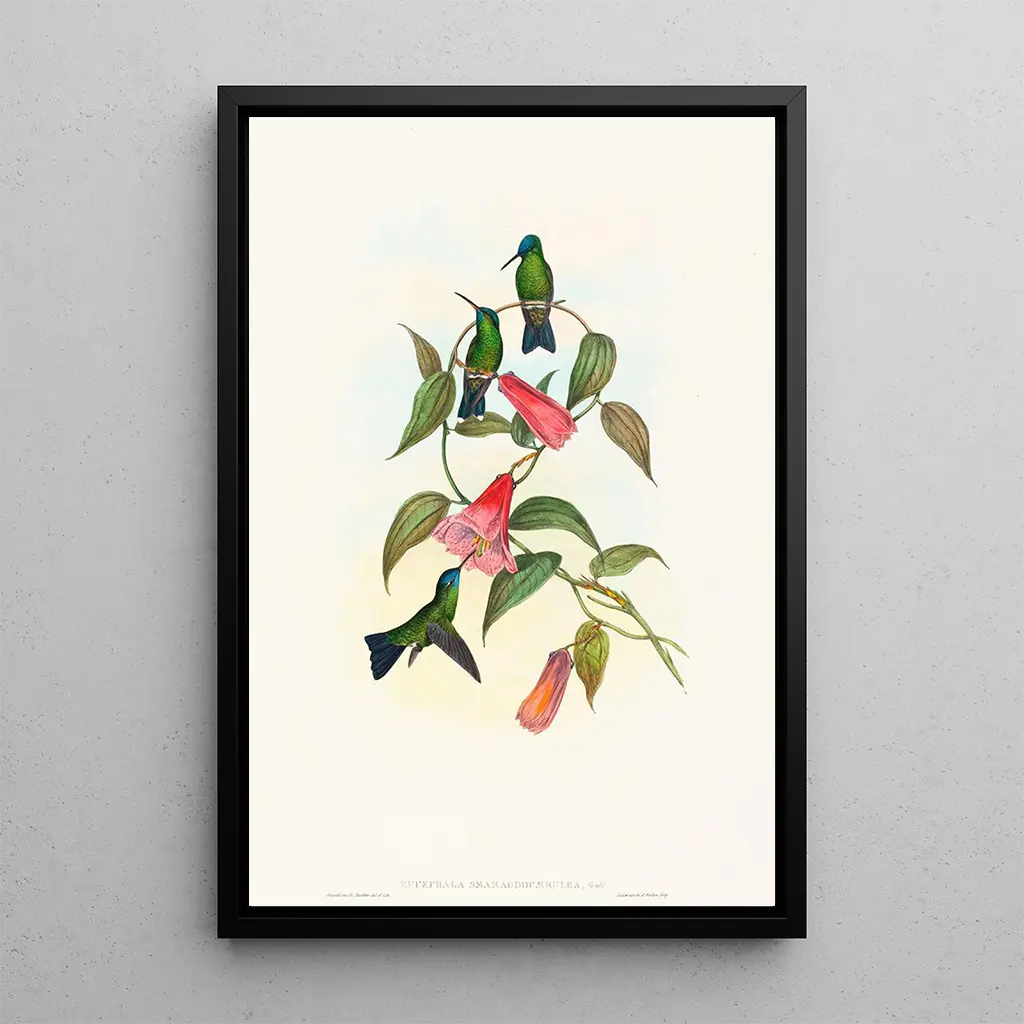 Eucephala smaragdocaerulea : a birdwatching marvel to discover The art print of the Eucephala smaragdocaerulea, created by John Gould, immerses us in a vibrant universe where nature reveals itself with brilliance. This artwork highlights a bird with dazzling colors, oscillating between emerald green and azure blue, creating a captivating visual harmony. Gould, a master of ornithological illustration, employs meticulous engraving techniques that make each feather almost tangible. The atmosphere of the piece is both serene and dynamic, inviting the viewer to admire the beauty of this rare bird in its natural habitat. John Gould : pioneer of artistic ornithology John Gould, a 19th-century British naturalist and illustrator, is recognized as one of the greatest ornithologists of his era. His passion for birds led him to travel around the world, documenting often unknown species. Influenced by the scientific discoveries of his time, Gould knew how to combine art and science, creating works that are both testimonies of biodiversity and pieces of art. His work has had a lasting impact on ornithology and naturalist art, making him an essential figure in the history of scientific art. A decorative acquisition with multiple assets The art print of the Eucephala smaragdocaerulea is an ideal decorative piece to enhance your interior, whether in a living room, office, or bedroom. Its print quality and fidelity to the original colors make it a captivating artwork that draws the eye and inspires admiration. By integrating this piece into your decor, you bring a touch of elegance and nature to your space, while celebrating the artistic heritage of John Gould. This artwork is not only an aesthetic element but also an invitation to contemplate ornithological beauty.