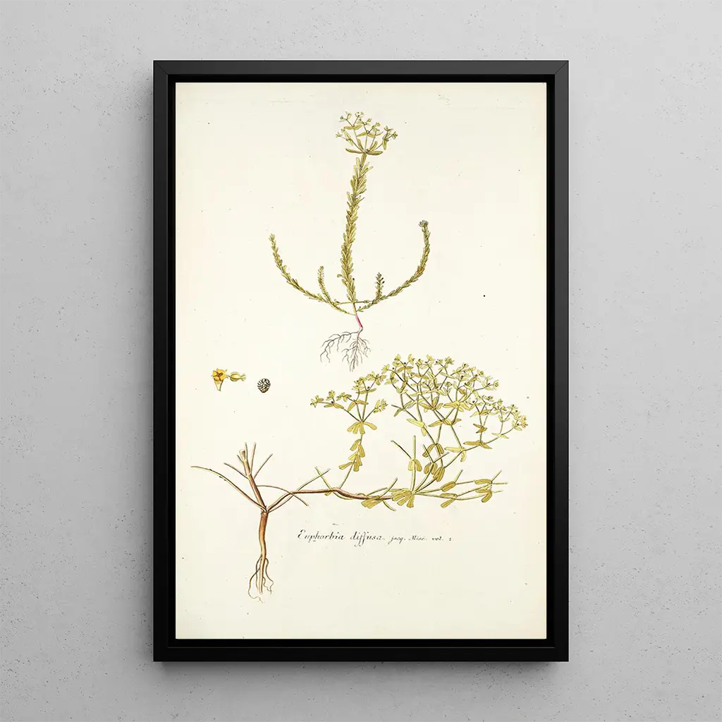 The art print of "Euphorbia diffusa" makes an ideal decorative addition to various spaces, whether in a living room, office, or bedroom. Its print quality and fidelity to the original details make it a preferred choice for botanical and art enthusiasts. This artwork brings a touch of freshness and serenity to your interior, while sparking conversations about nature and art. With its undeniable aesthetic appeal, this canvas will attract all those who wish to enrich their decor with a piece that is both scientific and poetic.