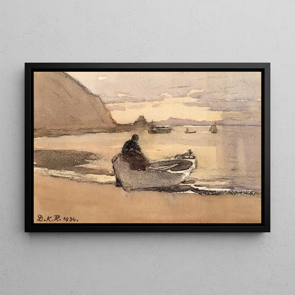 The art print Soir, baie de York by Dorothy Richmond captures the essence of a peaceful twilight, where the sky is tinged with golden and violet hues, reflected in the calm waters of the bay. The watercolor technique, used with finesse, creates subtle gradients that evoke a serene and contemplative atmosphere. The delicate details of the sailboats and distant silhouettes add a poetic dimension to this maritime scene, inviting the viewer to immerse themselves in this fleeting tranquility. Every brushstroke seems to tell a story, that of a moment suspended in time, where nature and man coexist in harmony.
