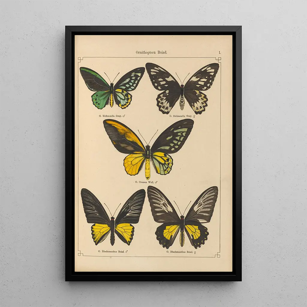 The art print "Exotic Butterflies Pl001" by Otto Staudinger is a vibrant celebration of biodiversity. The striking colors of the butterflies, ranging from deep blues to bright yellows, create a lively tableau that immediately captures the eye. Staudinger's delicate technique, combined with a keen sense of detail, allows each butterfly species to be rendered unique and fascinating. The piece evokes an atmosphere of lightness and joy, inviting the viewer to admire the ephemeral beauty of these winged creatures.