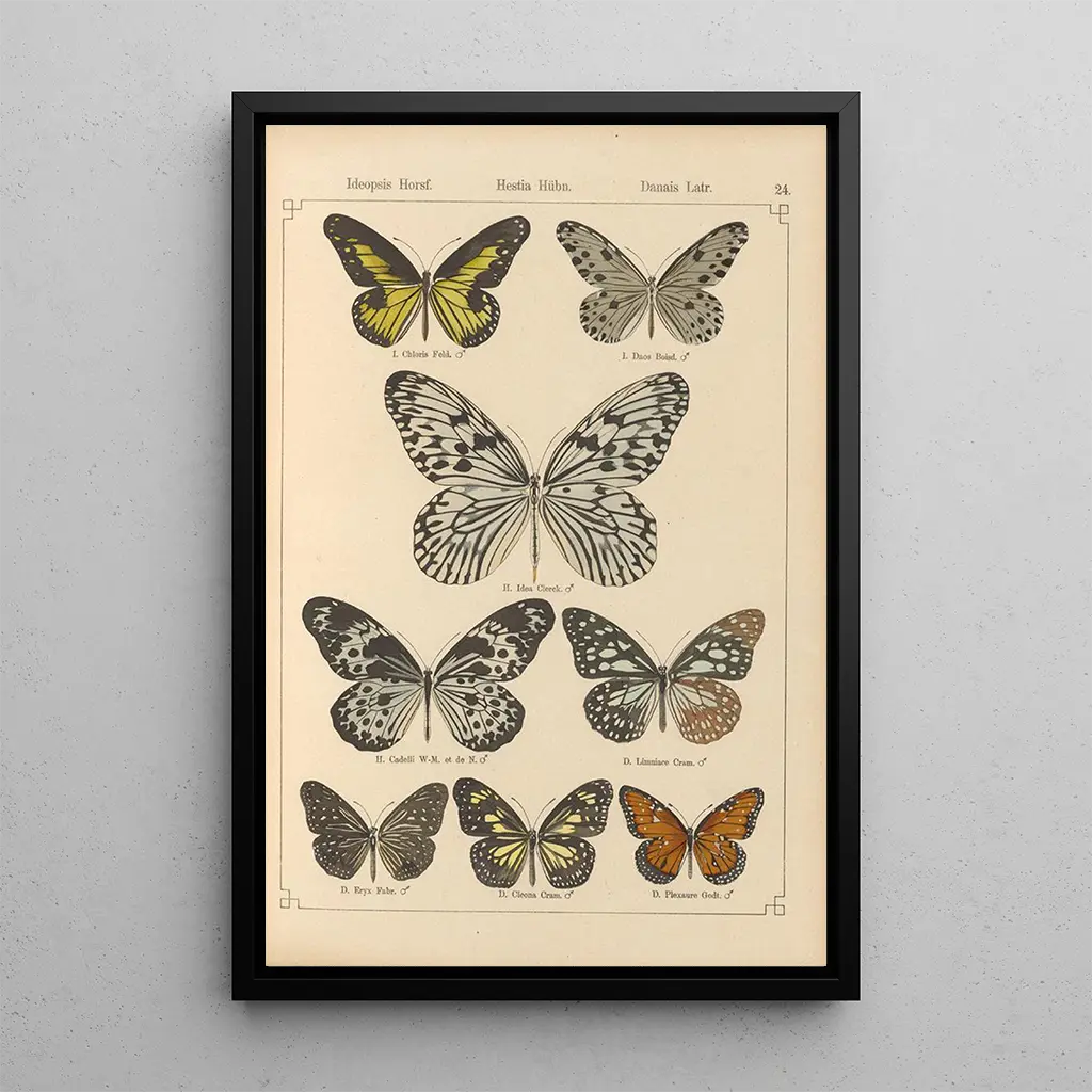 The "Papillons exotiques Pl024" by Otto Staudinger transport us to a world of vibrant colors and delicate shapes. This art print, rich in detail, highlights the fascinating beauty of butterflies, capturing their essence with remarkable precision. The bright hues and varied patterns of the wings create a joyful and lively atmosphere, inviting escape. Staudinger's technique, which combines realism and sensitivity, allows us to feel the lightness and grace of these insects, transforming the canvas into a true ode to nature.