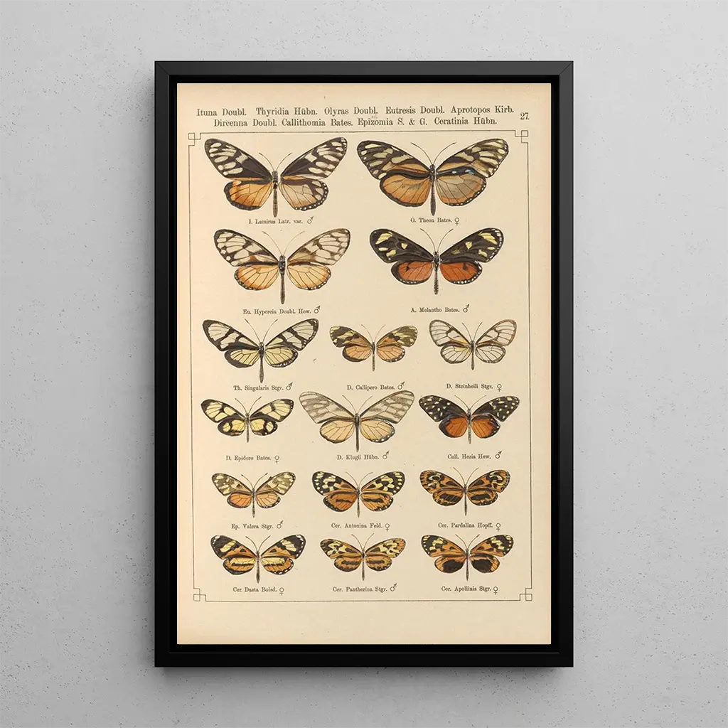 Papillons exotiques Pl027 : a vibrant dance of nature The art print of "Papillons exotiques Pl027" immerses us in a lively universe where nature expresses itself with brilliance. The shimmering colors of the butterfly wings, ranging from deep blues to bright yellows, create an atmosphere of lightness and freedom. The artist's technique, blending watercolor and drawing, brings each detail to life, making the butterflies almost tangible. This artwork invites serene contemplation, where one can almost hear the gentle flutter of wings and feel the light breeze accompanying them. It is a true ode to the fleeting beauty of these delicate creatures. Otto Staudinger: a pioneer of naturalist representation Otto Staudinger, a 19th-century artist, is recognized for his contribution to naturalist illustration, particularly in the field of fauna and flora. Influenced by the scientific discoveries of his time, he captured the essence of the species he depicted, combining precision and aesthetics. His works, often published in reference books, left a lasting impression and contributed to a better understanding of biodiversity. Staudinger masterfully combined art and science, making his art prints of butterflies a genuine legacy for future generations, while celebrating the beauty of nature. A decorative acquisition with multiple advantages Choosing an art print of "Papillons exotiques Pl027" is a wise decision to enhance your interior. Whether in a living room, office, or bedroom, this artwork adds a touch of freshness and dynamism. Its printing quality guarantees fidelity to the colors and details of the original piece, offering undeniable aesthetic appeal. By integrating this canvas into your decor, you create an inspiring and calming space, where the beauty of nature blends with your daily life, while also evoking admiration from your guests.