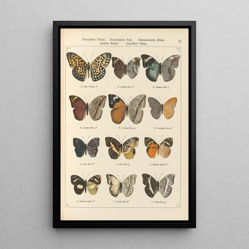 Otto Staudinger, actif à la fin du XIXe siècle, est reconnu pour ses contributions à l'illustration naturaliste. Influencé par les découvertes scientifiques de son époque, il a su capturer la diversité et la complexité du monde naturel à travers ses œuvres. Sa passion pour l'entomologie l'a amené à réaliser des illustrations d'une précision remarquable, faisant de lui une figure emblématique dans le domaine de l'art scientifique. Les "Papillons exotiques" témoignent de son engagement à représenter la beauté de la nature tout en éduquant le public sur la richesse de la biodiversité. Son travail reste une référence pour les artistes et les naturalistes contemporains.