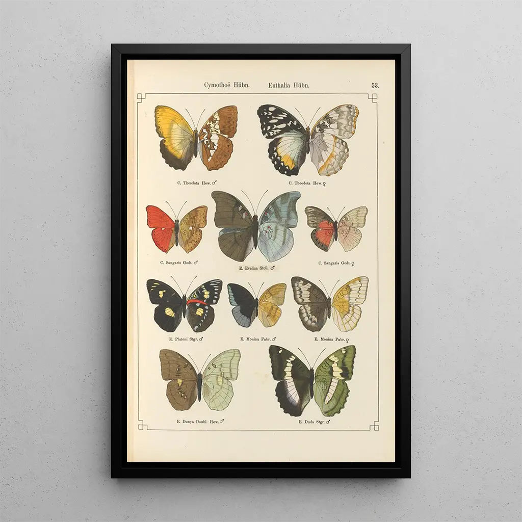 La reproduction de l'œuvre "Papillons exotiques Pl053" d'Otto Staudinger nous transporte dans un monde enchanteur où chaque papillon est une œuvre d'art à part entière. Les teintes vibrantes et les motifs délicats s'entrelacent pour créer une composition visuellement captivante. La lumière semble jouer sur les ailes, accentuant les détails minutieux et la texture des insectes. Cette toile évoque une atmosphère de sérénité et de fascination, invitant le spectateur à explorer la beauté de la nature sous un angle nouveau et poétique.