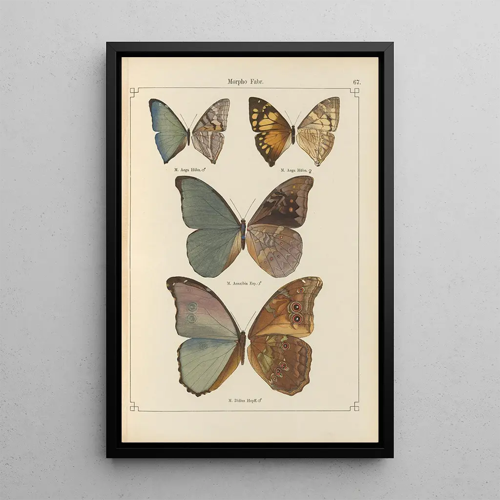 In this art print of Exotic Butterflies Pl067, Otto Staudinger immerses us in a vibrant universe where nature reveals itself with brilliance. The shimmering hues of the butterflies' wings blend harmoniously, creating a captivating tableau. The watercolor technique, used with finesse, captures the lightness and delicacy of these flying creatures. The atmosphere emanating from this piece is both soothing and inspiring, inviting escape and contemplation of the wonders of biodiversity.