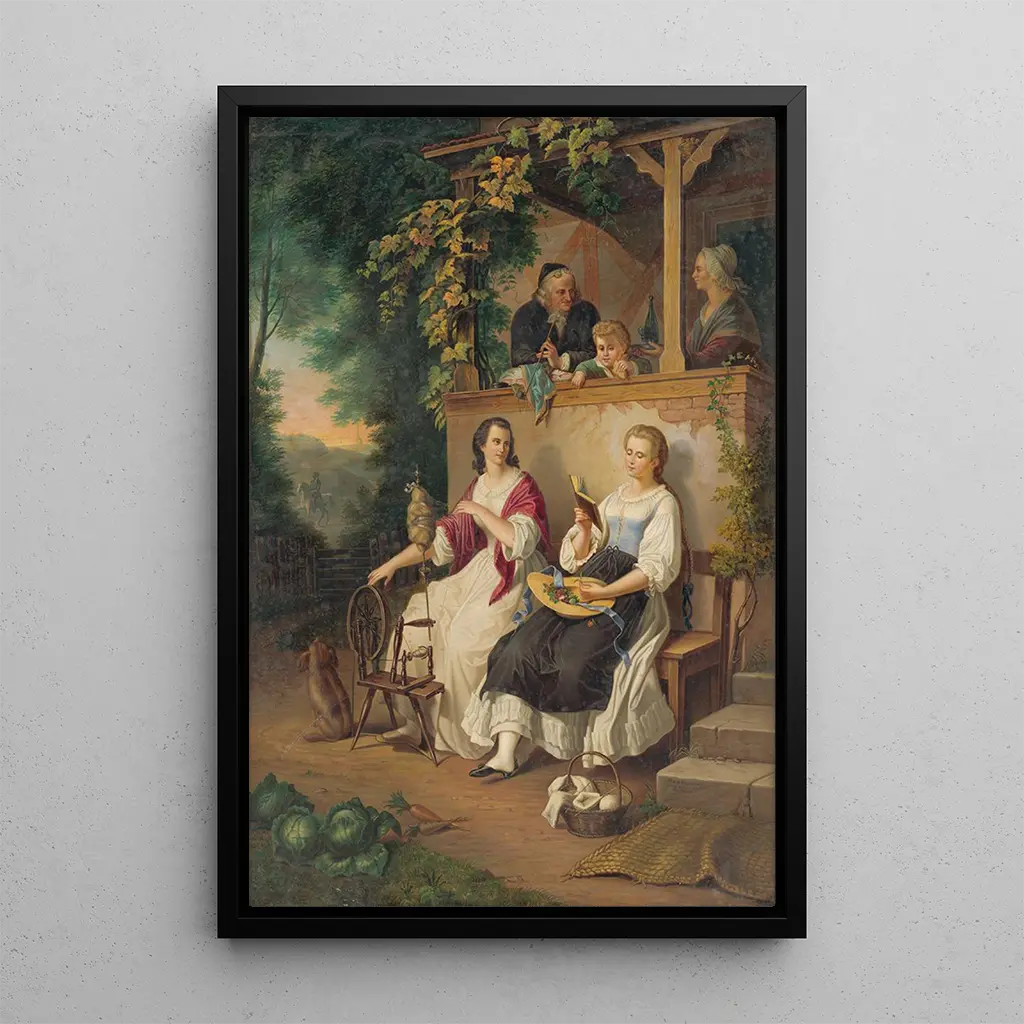 Peter Michal Bohúň, né en 1822, est un peintre slovaque reconnu pour son rôle dans le mouvement national slovaque du XIXe siècle. Influencé par le romantisme, il s'est engagé à représenter la culture et les traditions slovaques à travers son art. Bohúň a souvent puisé son inspiration dans la vie quotidienne, cherchant à immortaliser des scènes typiques de la société slovaque de son époque. Son œuvre, bien que moins connue à l'international, est d'une importance capitale pour la préservation de l'identité culturelle slovaque. "Idylle familiale" illustre parfaitement cette volonté de célébrer la vie familiale et les valeurs traditionnelles.
