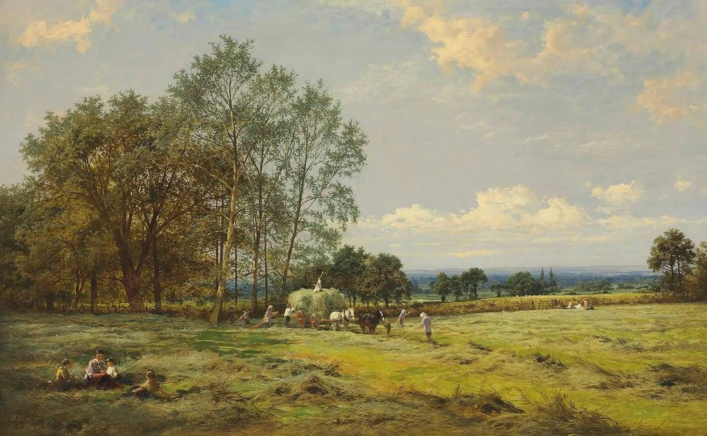 Benjamin Williams Leader, active in the late 19th century, is recognized for his luminous landscapes and scenes of rural life. Influenced by the Pre-Raphaelite movement, he mastered capturing light and color with remarkable precision. Leader was also an active member of the Royal Academy, which attests to his importance in the British artistic scene. "Faneurs" is an emblematic work that illustrates his talent for representing the beauty of the English countryside, while highlighting the hard work of farmers. His unique style continues to inspire art enthusiasts today.
