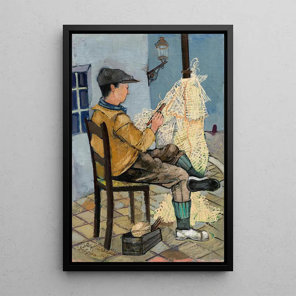 The art print of "Repairer of nets" is a decorative piece that will enhance your interior, whether in a living room, office, or bedroom. Its printing quality guarantees remarkable fidelity to the original artwork, allowing you to feel the full intensity of Nussbaum's art. This poster adds a touch of authenticity and depth to your decoration, while sparking conversations around its poignant message. By integrating this canvas into your space, you do not just beautify your environment, but also invite reflection on universal themes of struggle and resilience.