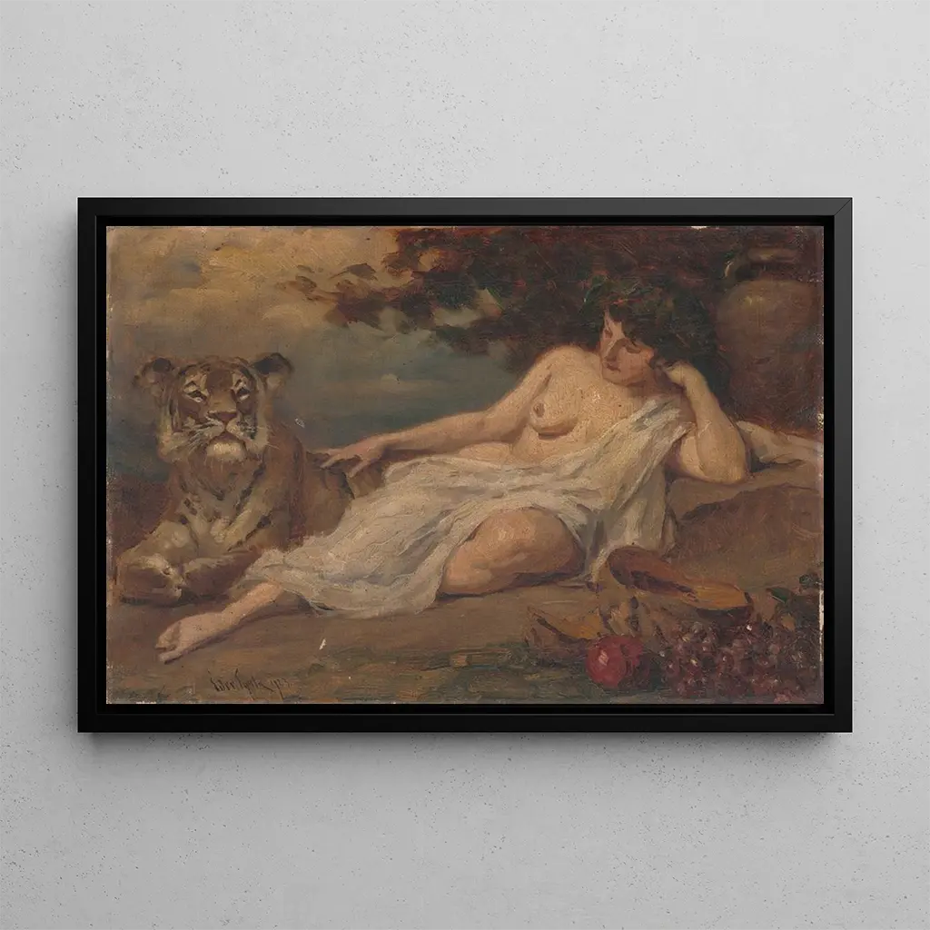 The artwork "Acte féminin avec tigre" by Julius Lederer is a striking depiction of femininity and animal power. The canvas features a woman, in a graceful posture, surrounded by a majestic tiger. The warm colors and striking contrasts create an atmosphere that is both sensual and intriguing. Lederer's technique, which combines realism with a touch of expressionism, brings this bold composition to life. Every detail, from the delicate features of the woman's face to the fierce patterns of the tiger, evokes harmony between man and wild nature.