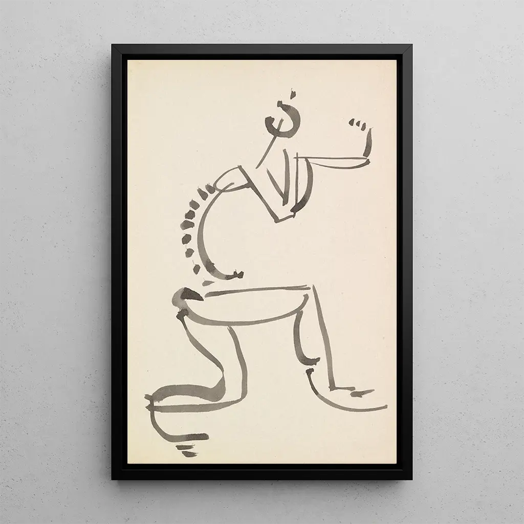 The art print "Figure Study" by Henri Gaudier-Brzeska stands out for its ability to capture the essence of the human body in dynamic motion. The flowing lines and stylized shapes evoke a sense of life and energy, while the monochrome palette emphasizes the contrast between shadow and light. The paper sculpture technique, blending drawing and engraving, creates an atmosphere that is both intimate and expressive. Each curve seems to vibrate, inviting the viewer to feel the raw emotion emanating from this study, a true ode to the beauty of the body.