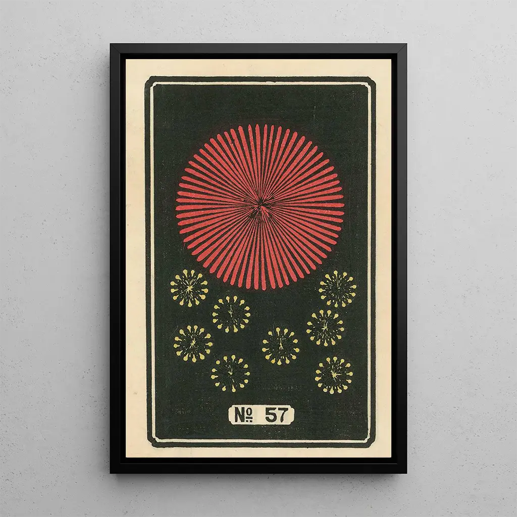 In this art print of Night Fireworks No. 57, Jinta Hirayama immerses us in a dazzling spectacle where vibrant colors blend with the darkness of the night sky. The luminous bursts, resembling shooting stars, illuminate the canvas with captivating intensity. The artist's technique, which combines watercolor and ink, creates an atmosphere that is both festive and melancholic, evoking summer memories and celebrations. Each brushstroke seems to dance across the canvas, paying homage to the ephemeral beauty of fireworks.