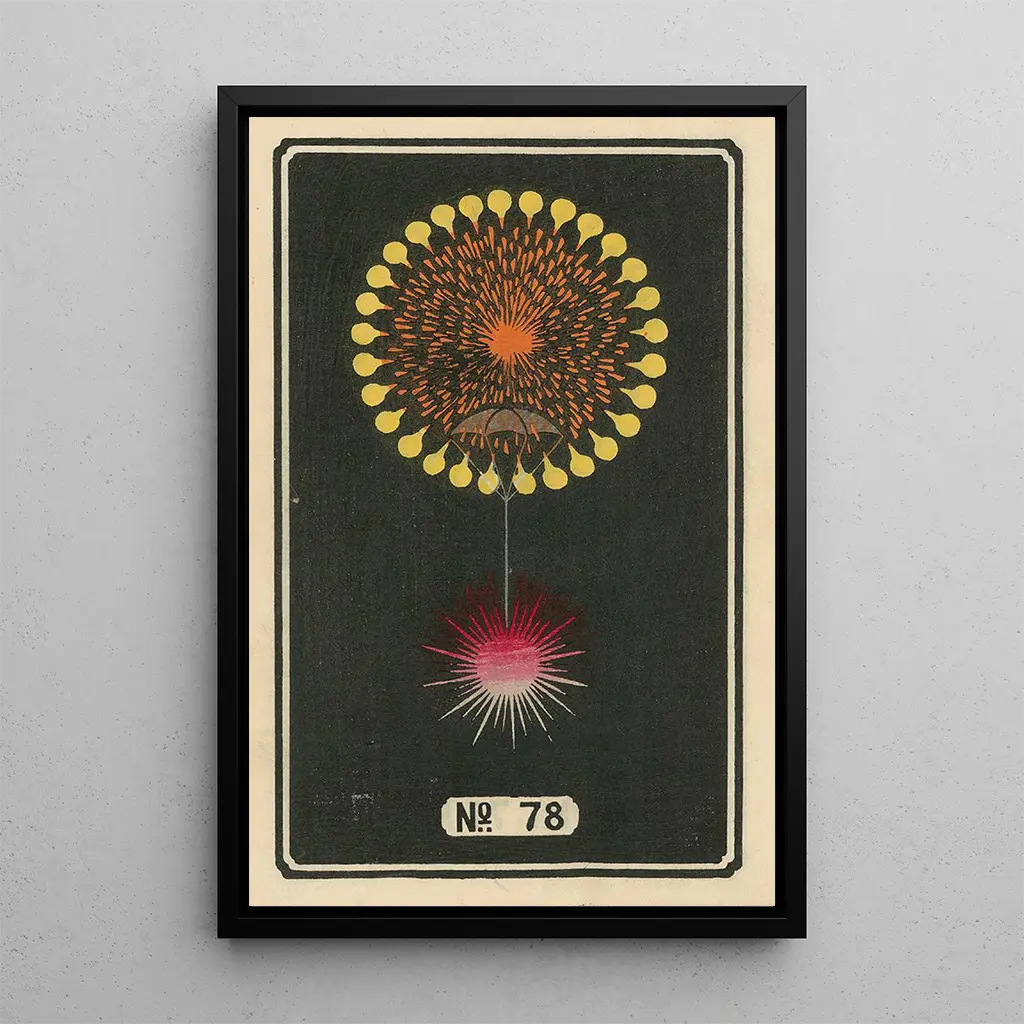 Choosing the art print of Night Fireworks No. 78 means selecting a piece that will enhance your living space. Whether in a living room, office, or bedroom, this artwork adds a touch of color and dynamism. Its printing quality guarantees fidelity to the original works, while offering undeniable aesthetic appeal. By integrating this canvas into your decor, you create a warm and festive atmosphere, while paying tribute to modern Japanese art. This decorative choice is sure to arouse interest and admiration from your guests.