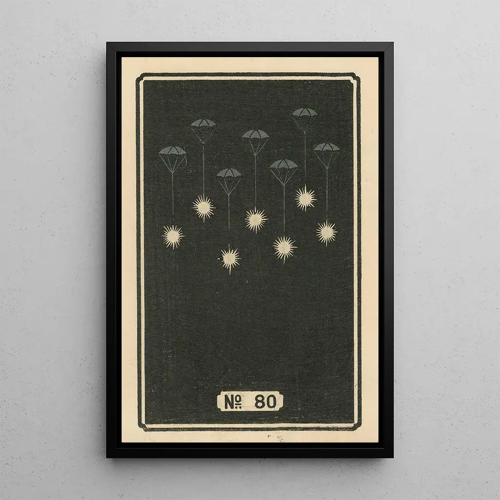 The art print "Night Fireworks No. 80" by Jinta Hirayama immerses us in a captivating visual spectacle. The vibrant colors, ranging from bright reds to deep blues, blend harmoniously to create a festive and enchanting atmosphere. The artist's technique, which combines watercolor and ink, brings each explosion of light to life, as if you could hear the crackling of the fireworks. This art print evokes a summer night, where the sky transforms into a living tableau, inviting viewers to marvel at the fleeting beauty of these magical moments.