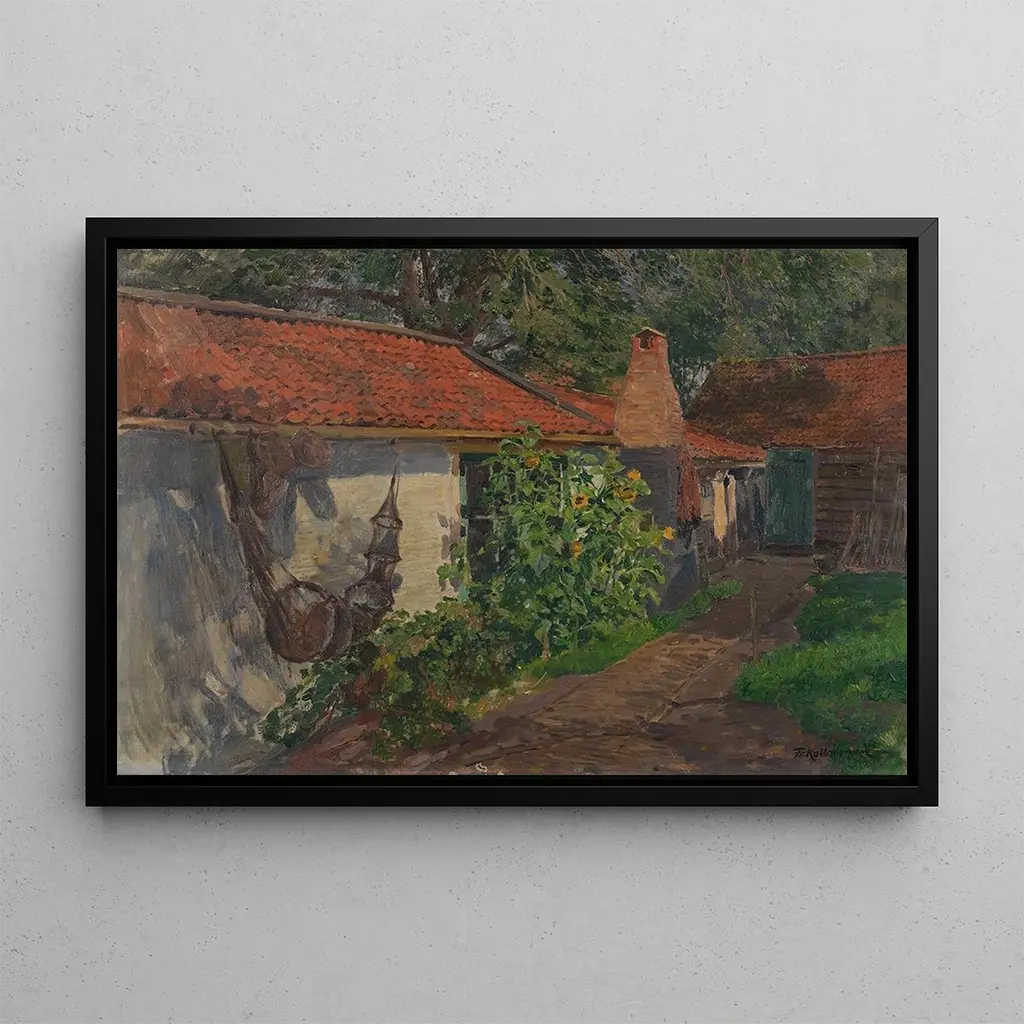 The art print of Friedrich Kallmorgen's Fisherman's Cabin evokes a peaceful and contemplative atmosphere. This piece, painted with soft and natural colors, depicts a rustic cabin by the water, surrounded by lush vegetation. The shades of green and blue blend harmoniously, creating a sense of tranquility. Kallmorgen's technique, which employs delicate brushstrokes, brings the scene to life, inviting the viewer to imagine themselves in this haven of peace. Light plays a crucial role, subtly illuminating the cabin and its surroundings, thus enhancing the impression of calm and harmony with nature.