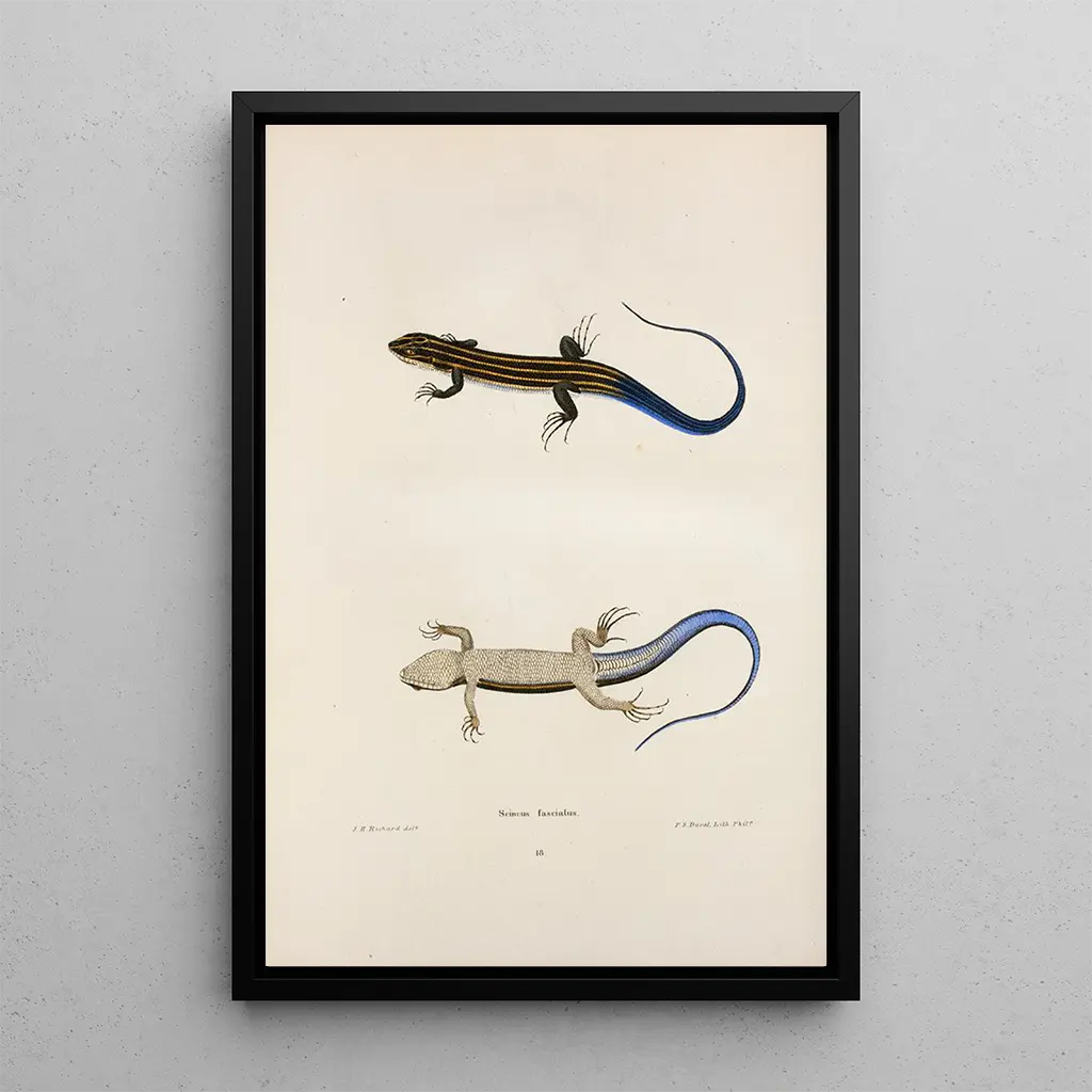 The art print of the "Scinque fascié" is a decorative piece that will enhance your interior, whether in a living room, office, or bedroom. Its printing quality guarantees remarkable fidelity to the colors and details of the original artwork, adding a touch of elegance and curiosity to your decor. This art print, beyond its aesthetic appeal, sparks conversations and invites discovery of the natural world. Choosing this canvas means selecting a piece that combines artistic beauty with scientific interest, perfect for nature and art enthusiasts.