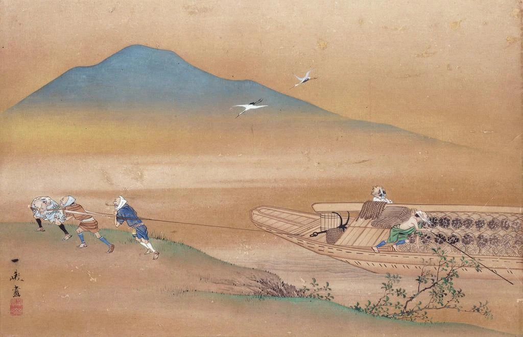 Five Figures Pulling a Boat: A Scene of Labor and Solidarity