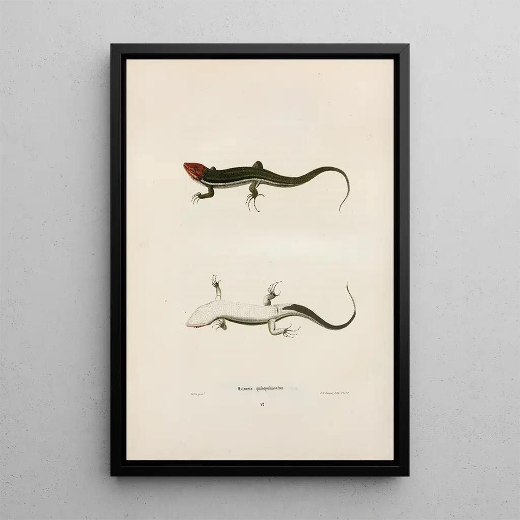 La reproduction du "Scinque à cinq lignes" est une pièce décorative idéale pour ceux qui souhaitent ajouter une touche d'originalité à leur espace. Que ce soit dans un bureau, un salon ou une chambre, cette toile attire l'œil et suscite la curiosité. La qualité de l'impression assure une fidélité exceptionnelle aux détails de l'œuvre originale, tout en apportant une ambiance chaleureuse et naturelle à votre intérieur. En choisissant cette œuvre, vous optez pour une décoration qui allie esthétique et passion pour la nature, parfaite pour les amoureux des animaux et de l'art print.