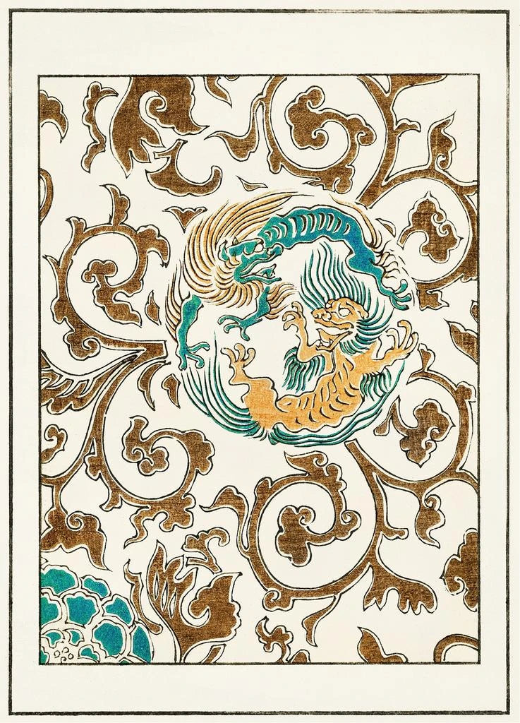 Painting Illustration of floral and spiritual pattern - Watanabe Seitei | Art print