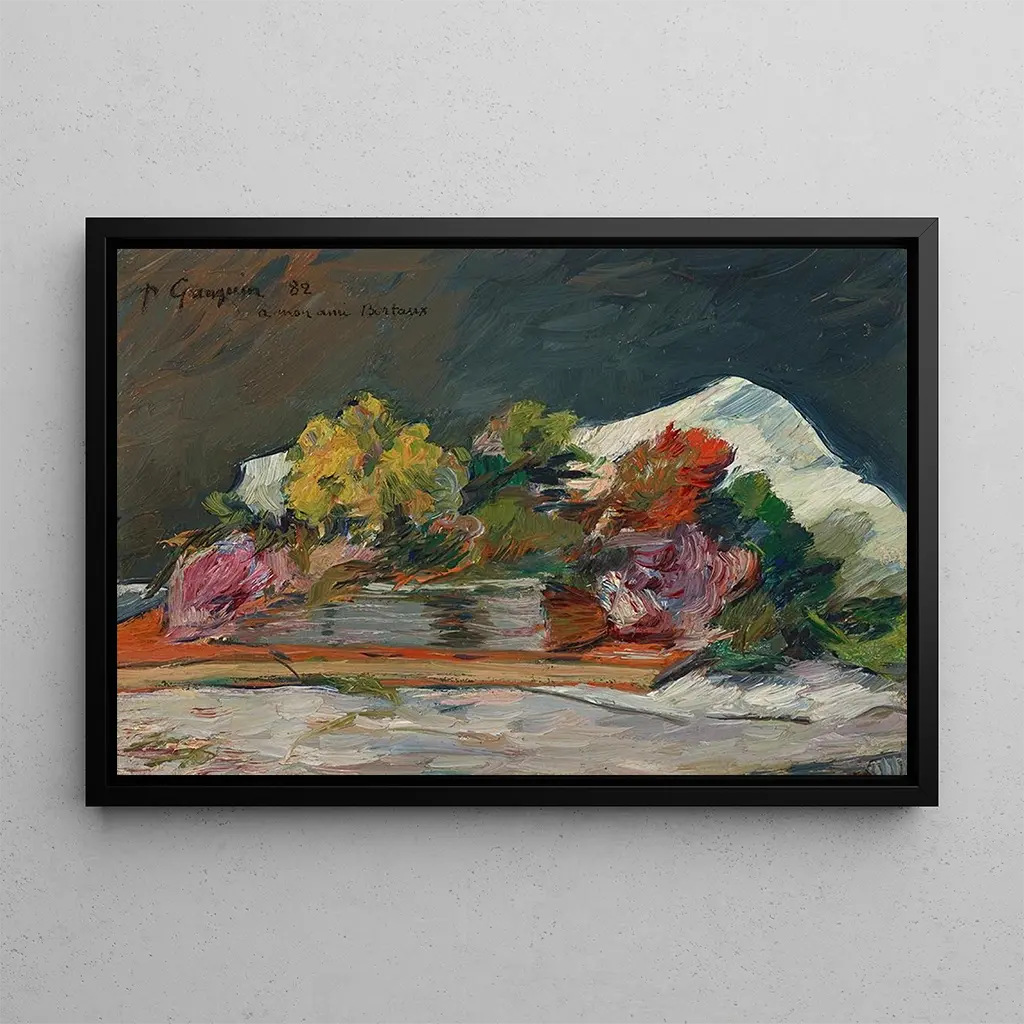 The art print Flowers and Books by Paul Gauguin immerses us in a vibrant universe where nature and culture meet. The dazzling flowers, with warm and luminous hues, intertwine with books with colorful covers, creating a rich and harmonious composition. Gauguin's technique, characterized by bold brushstrokes and an expressive palette, gives the work an atmosphere that is both serene and dynamic. This painting invites contemplation, daydreaming, where each element seems to tell a story, an invitation to explore the artist's thoughts and emotions.
