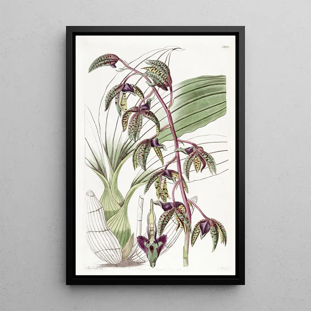 The art print "Flywort with triangular lip" by Sydenham Edwards is a true ode to botanical beauty. This captivating piece stands out with its delicate colors, ranging between deep greens and touches of bright white. The watercolor technique, used with finesse, captures the texture of the leaves and the transparency of the petals. The atmosphere emanating from this art print is both soothing and inspiring, inviting the viewer to delve into the fascinating world of plants. Every detail appears to be carefully observed, reflecting a passion for botany and a desire to capture the very essence of nature.