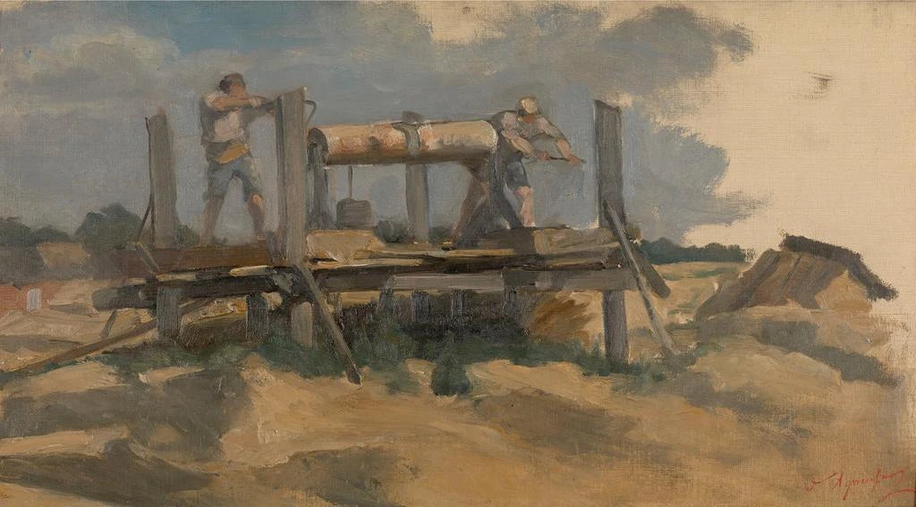 Forage of a Well: A Vibrant Scene of Rural Life In this captivating artwork, Édouard Agneessens depicts a daily life scene, where the worker is busy drilling a well. The earthy colors and shades of blue create an atmosphere that is both realistic and poetic. Light plays a crucial role, illuminating the faces of the characters and the details of the surrounding landscape. The artist's technique, which skillfully blends realism with a touch of impressionism, allows the viewer to feel the warmth of the sun and the physical effort of the man at work. This art print of "Forage d'un puits" invites contemplation of traditional trades, while celebrating the beauty of everyday life. Édouard Agneessens: a Witness of His Time Édouard Agneessens, a Belgian painter of the 19th century, is known for his depictions of rural life scenes and nature. Influenced by the realist movement, he strives to capture the authenticity of simple moments. His career is marked by a keen attention to detail and a color palette that evokes life and light. Agneessens established himself in the artistic world of his time, and his works reflect an era when art was meant to mirror social reality. The reproduction of "Forage d'un puits" is a perfect example of his commitment to representing daily life with a unique sensitivity. A Decorative Acquisition with Multiple Benefits This reproduction of "Forage d'un puits" makes an ideal decorative addition to various living spaces. Whether in a living room, office, or bedroom, it adds a touch of authenticity and charm. The quality of the print guarantees fidelity to the colors and details of the original artwork, allowing you to fully enjoy the atmosphere conveyed by the scene. By incorporating this canvas into your decor, you offer your interior a piece of art that tells a story, while adding an aesthetic dimension that will captivate your guests.