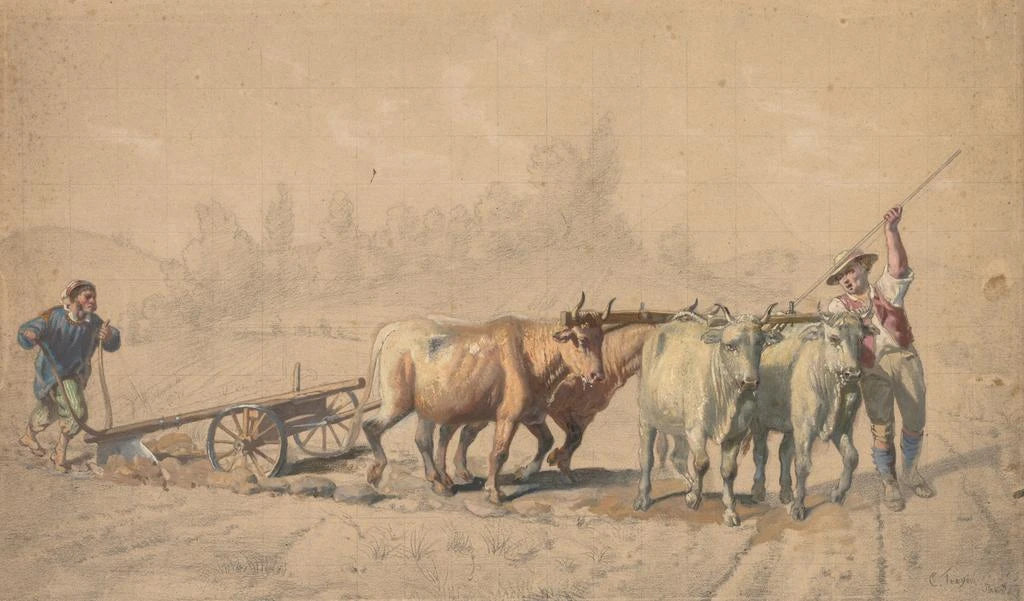 Four oxen pulling a plow - Constant Troyon