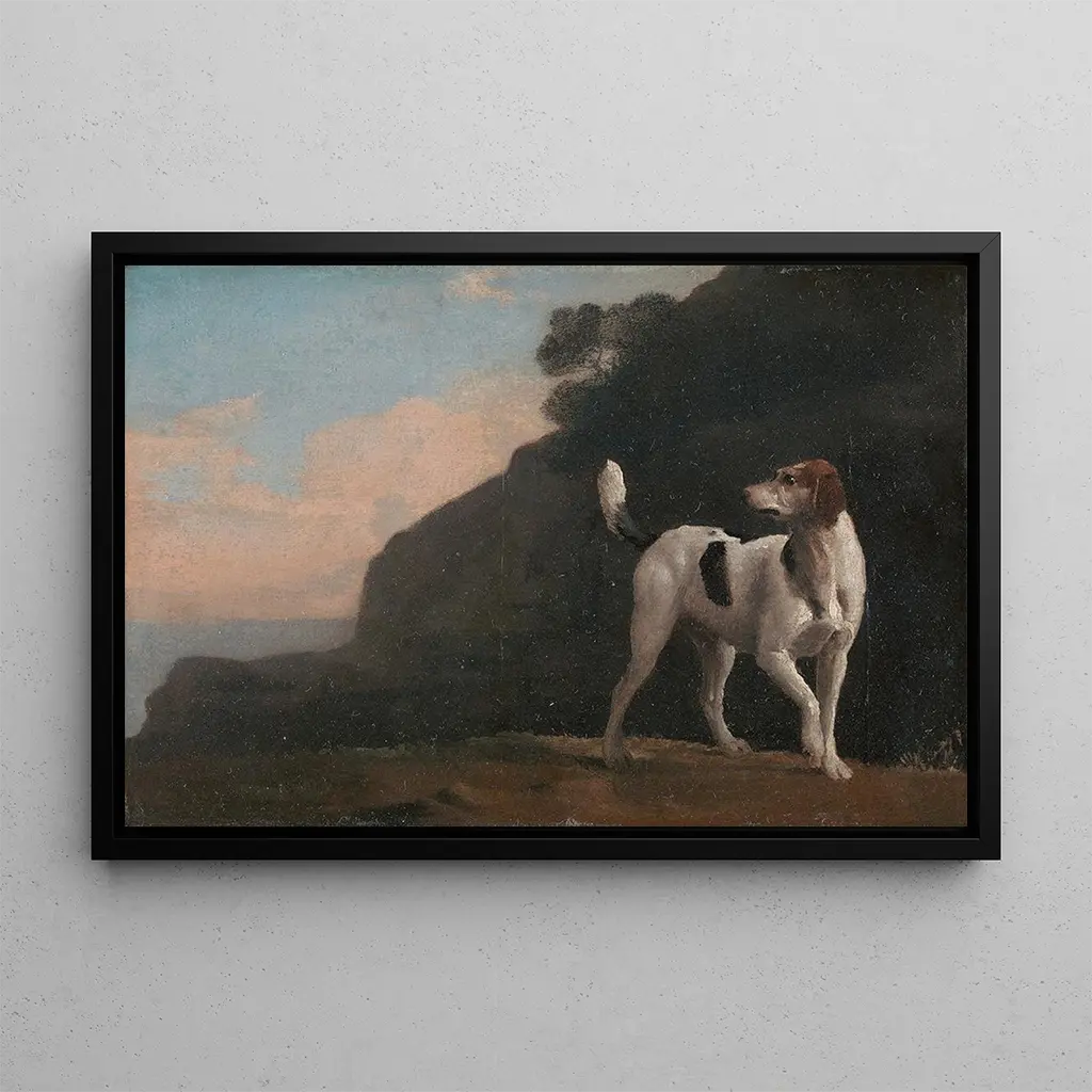 The Foxhound art print by George Stubbs captures the very essence of canine beauty and grace. In this work, the English painter uses rich colors and meticulous details to depict a majestic hunting dog, frozen in a dynamic posture. Natural light plays on its coat, highlighting the shades of brown and white that emphasize the animal's musculature. The canvas evokes an atmosphere of pride and loyalty, typical of hunting dogs, while offering a window into the aristocratic world of the 18th century, where hunting was a symbol of status.