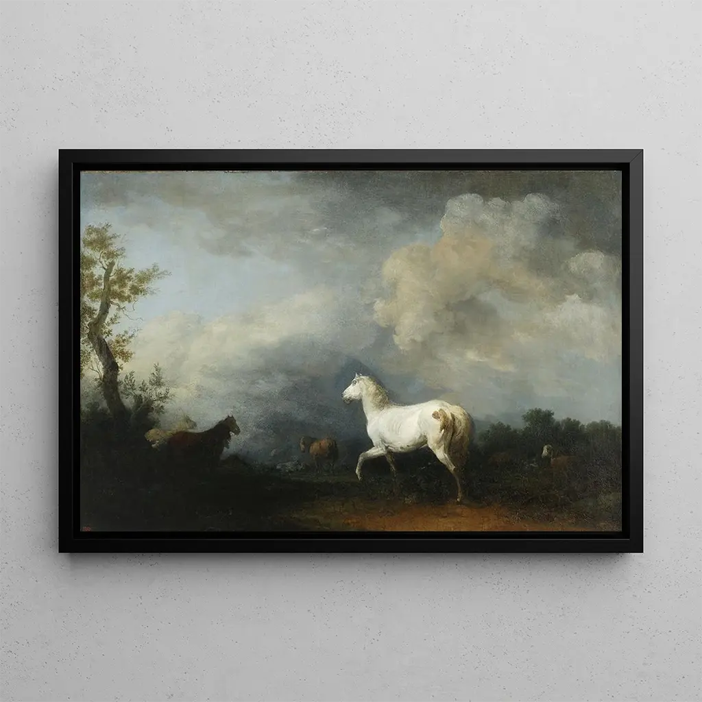 Francesco Giuseppe Casanova, active in the 18th century, is renowned for his works that highlight the beauty of animals, particularly horses. Influenced by the Baroque movement, his style is characterized by meticulous attention to detail and a capacity to capture the very essence of his subjects. Casanova managed to establish himself in the art world thanks to his deep understanding of form and movement, enabling him to create dynamic and lively compositions. His work reflects an era when nature and realistic representation of animals were at the heart of artistic concerns.