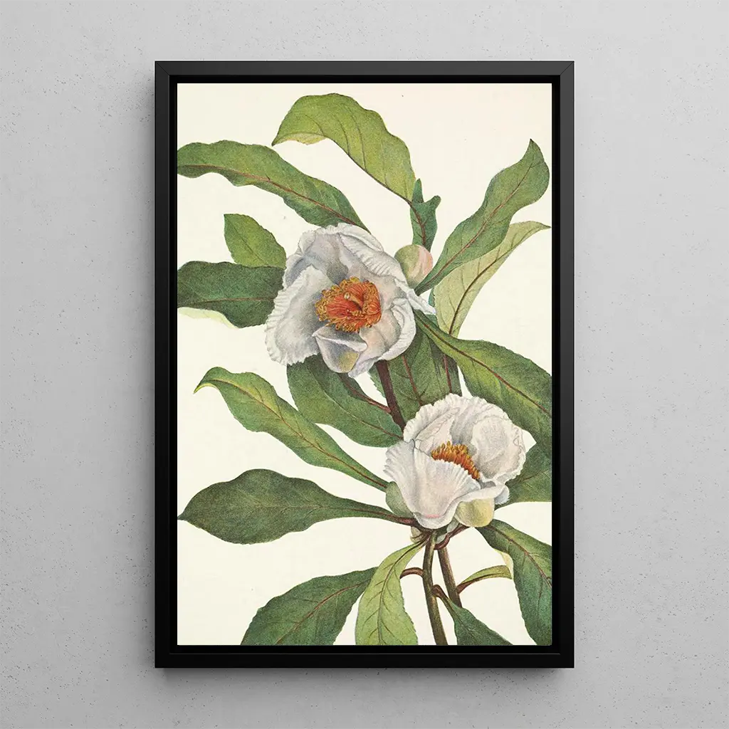 "Franklinia alatamaha" is a captivating art print by Mary Vaux Walcott that highlights the ephemeral beauty of this rare plant. With soft colors and delicate forms, this canvas evokes a sense of serenity and nostalgia. The watercolor technique allows Walcott to play with light and shadow, creating an almost magical atmosphere. Each brushstroke reveals the fragility of this extinct species, inviting viewers to reflect on the preservation of nature and the richness of biodiversity.