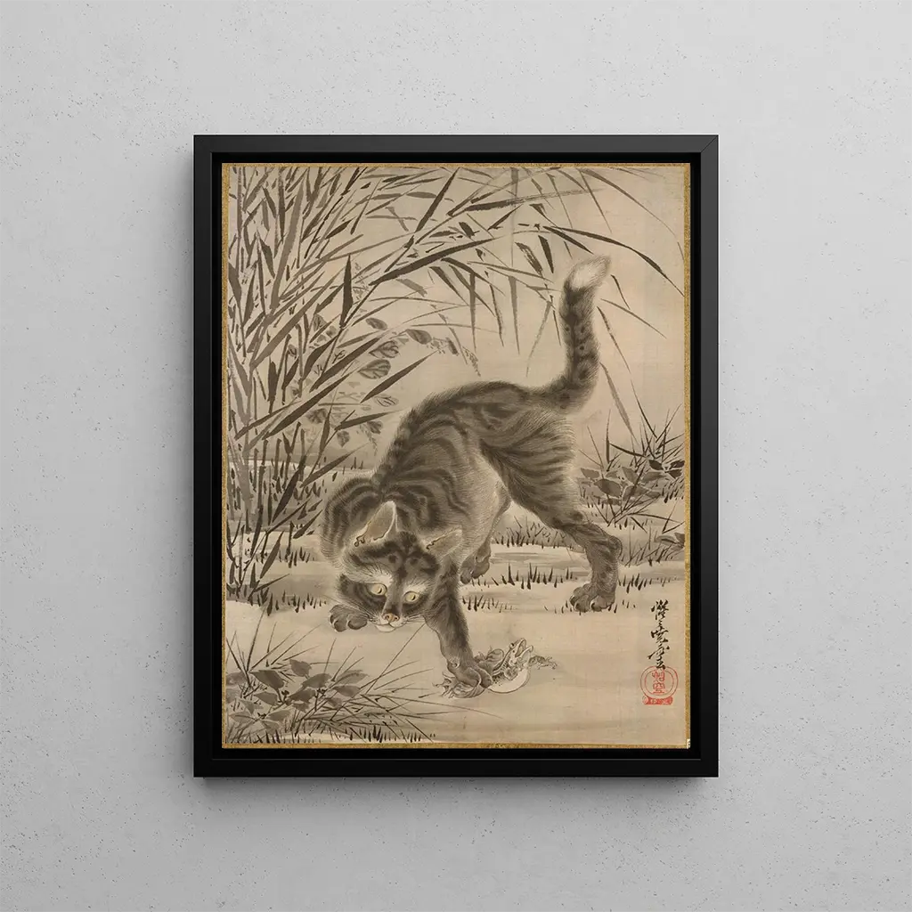 Frog-catching Chat - Kawanabe Kyōsai