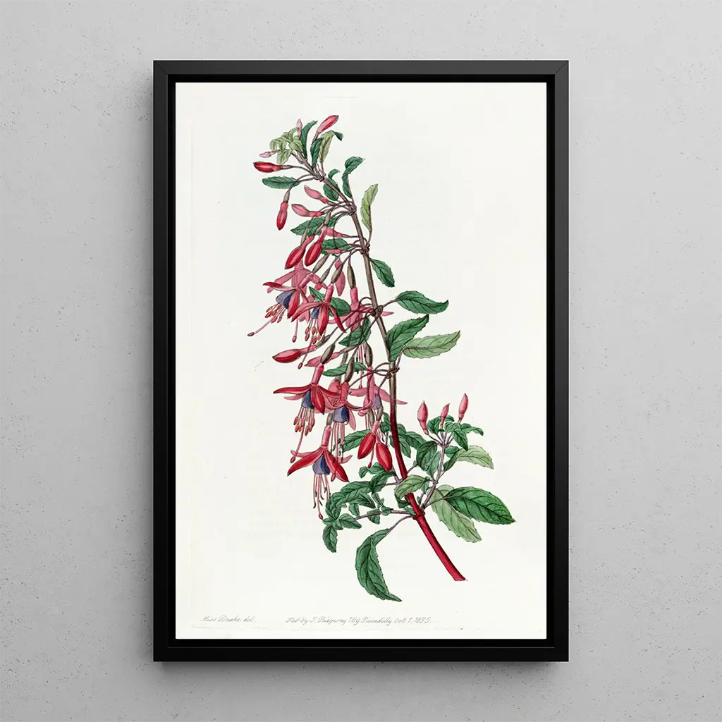 Fuchsia of Port Famine: an enchanting floral dance The art print of the Fuchsia of Port Famine immerses us in a vibrant universe where dazzling colors intertwine with delicacy. The petals, in a vivid pink, unfold gracefully, while the green of the leaves offers a striking contrast. The watercolor technique, mastered by Sydenham Edwards, gives this piece an almost airy lightness. The atmosphere emanating from this canvas invites contemplation, as if each flower tells a story of fleeting beauty and lush nature. Sydenham Edwards: a pioneer of botanical illustration Sydenham Edwards, active in the early 19th century, is recognized for his essential role in the development of botanical illustration. Influenced by the scientific discoveries of his time, he knew how to combine precision and aesthetics in his works. His work was widely disseminated through publications such as "The Botanical Register," where he presented exotic plants with remarkable attention to detail. Edwards thus contributed to popularizing botany among the general public, making him an iconic figure of his era. A decorative acquisition with multiple assets Choosing an art print of the Fuchsia of Port Famine means selecting a decorative piece that will enhance any space, whether a living room, an office, or a bedroom. The quality of the print guarantees fidelity to the colors and details of the original, offering undeniable aesthetic appeal. This canvas, with its floral and lively atmosphere, will bring a touch of freshness and serenity to your interior, while also inspiring admiration from your guests.