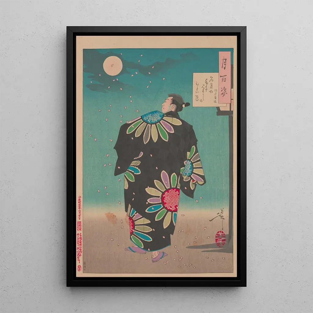 The art print of Fukami Jikyu defies the moon is a decorative piece that will enrich your interior, whether it is a living room, office, or bedroom. Its print quality and fidelity to the original artwork guarantee an exceptional visual experience, while adding a touch of elegance and culture to your space. This artwork, with its vibrant colors and poetic message, draws the eye and sparks conversations. By choosing this art print, you opt for a timeless piece that combines aesthetics and depth, while celebrating Japanese artistic heritage.