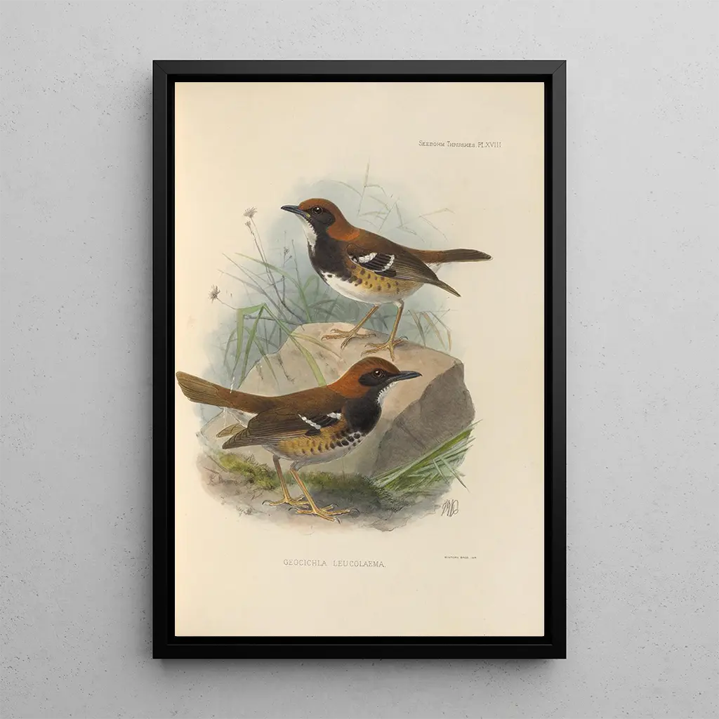 Geocichla Leucolaema: a song of natural harmony The art print of Geocichla Leucolaema, also known as the white-backed thrush, evokes a peaceful scene where nature reveals itself in all its splendor. The delicate colors of this bird, with its plumage shaded in white and black, are highlighted by touches of green and brown that recall its forest habitat. The artist's technique, which plays with light and shadow, creates a serene and contemplative atmosphere, inviting the viewer to appreciate the beauty of avian wildlife. This piece is a true ode to biodiversity, capturing the very essence of wild life. Henry Seebohm: a pioneer of artistic ornithology Henry Seebohm, a 19th-century ornithologist and artist, masterfully combined a passion for birds with artistic talent. His explorations around the world, notably in Asia and Europe, enriched his knowledge and influenced his style. Seebohm is recognized for his precise and poetic illustrations, which testify to his commitment to conservation of nature. At a time when ornithology was beginning to take shape, his works played a key role in raising awareness of the beauty and diversity of avian species. The art print of Geocichla Leucolaema thus fits into a valuable artistic and scientific heritage. A decorative acquisition with multiple advantages Incorporating the art print of Geocichla Leucolaema into your interior is a wise choice to add a touch of nature to your decor. Whether in a living room, office, or bedroom, this artwork will appeal through its aesthetic charm and reproduction quality. Every detail is faithfully reproduced, offering an immersion into the natural universe. By choosing this canvas, you opt for a piece that not only enhances your space but also encourages reflection on the preservation of our environment. It is a work that draws the eye and sparks conversations, while bringing a calming atmosphere to your decor.