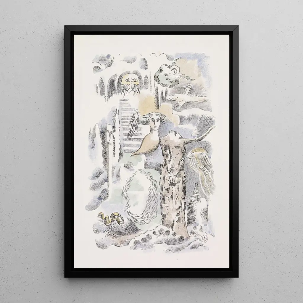 Ghosts: a dreamlike exploration of anxiety In the artwork "Ghosts," Paul Nash immerses us in a disturbing universe where reality and imagination blend. The composition is characterized by blurred shapes and ephemeral silhouettes that seem to float in a desolate landscape. The colors, dominated by shades of gray and blue, create an atmosphere of melancholy and mystery. Nash's technique, combining oil painting and surrealist influences, invites the viewer to a deep introspection, seeking meaning in this troubled world. Every detail, every shadow, evokes an emotion, a memory, as if the ghosts of the past still haunt the places. Paul Nash: a pioneer of British surrealism Paul Nash, an emblematic figure of the British surrealist movement, captured the essence of the conflicts of his time through his art. Born in 1889, he was influenced by symbolism and cubism, but it was his experience of the First World War that profoundly marked his work. Nash often explored themes of desolation and renewal, using devastated landscapes as a backdrop to express his emotions. "Ghosts" fits into a period when art became a means of expressing traumas, and Nash, through his unique approach, left a lasting legacy in art history. A decorative art print with multiple assets The art print of "Ghosts" is a centerpiece that will enrich your interior, whether in a living room, office, or bedroom. Its printing quality guarantees remarkable fidelity to the nuances and details of the original artwork, allowing you to feel the full emotional depth of the canvas. The aesthetic appeal of this piece lies in its ability to provoke reflection and create an intriguing atmosphere. By integrating this artwork into your decor, you give your space a touch of art that will captivate your guests and spark conversations.