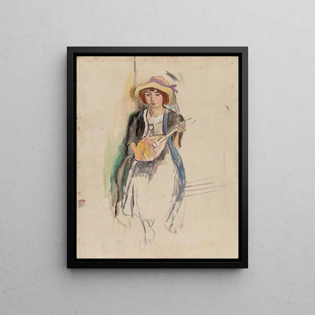 Jules Pascin, a Franco-Bulgarian artist of the early 20th century, is renowned for his portraits of women and scenes of nightlife. In his art print "Fille à la mandoline," he depicts a young woman playing the mandolin, her face expressing both serenity and melancholy. Pascin uses soft colors and flowing lines to create an intimate atmosphere that invites contemplation. This art print reflects not only the aesthetic of the period but also the emotion and psychological depth of his subjects. In a contemporary setting, an artwork like this can enrich a space, bringing an artistic touch and a personal story. Discover the art print of this work on Artem Legrand to add a poetic dimension to your interior.